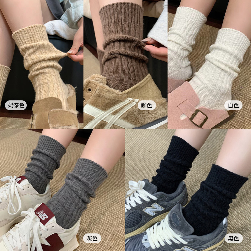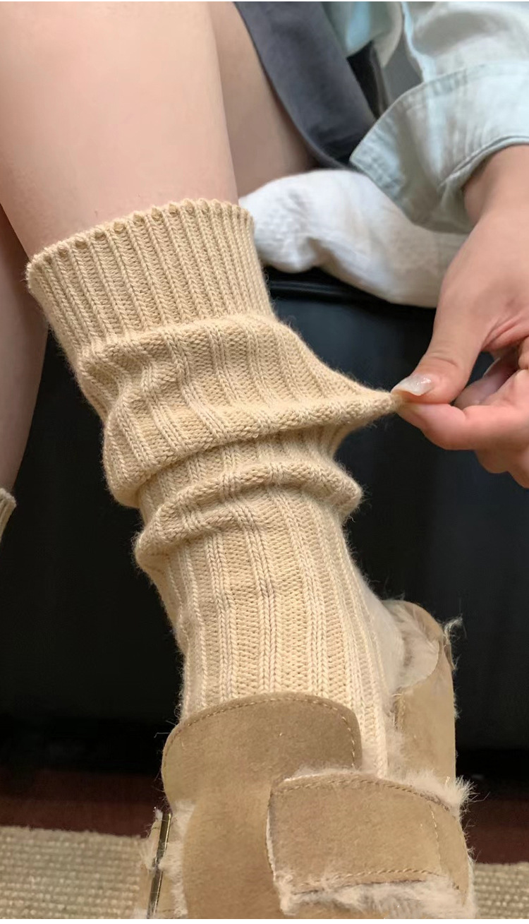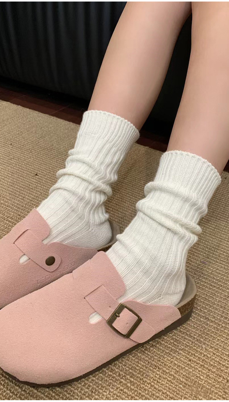 가을 겨울 여성용 버켄스탁 신발 및 양말, 두꺼운 실 양말, 순면 니트 울 종아리 양말, 스노우 부츠, 흰색 스타킹스토어 가기