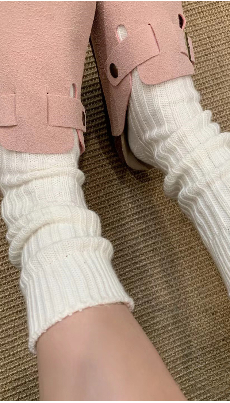가을 겨울 여성용 버켄스탁 신발 및 양말, 두꺼운 실 양말, 순면 니트 울 종아리 양말, 스노우 부츠, 흰색 스타킹