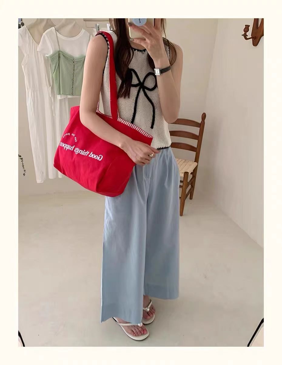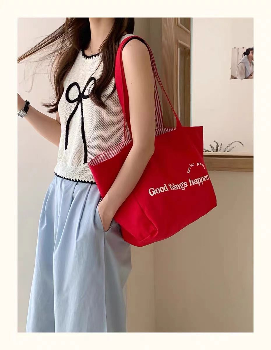 대용량 토트 백 더블 사이드 백 스트라이프 어깨 가방 질감 자수 대학생 캔버스 가방 여성 통근 가방