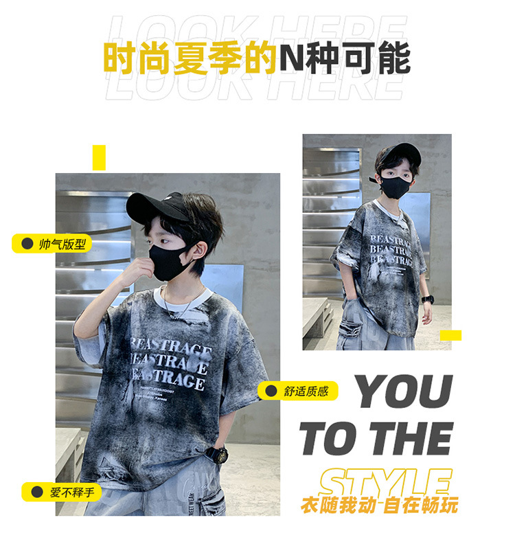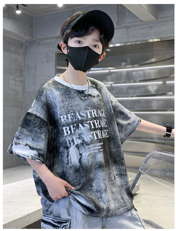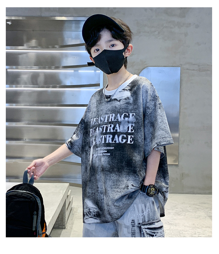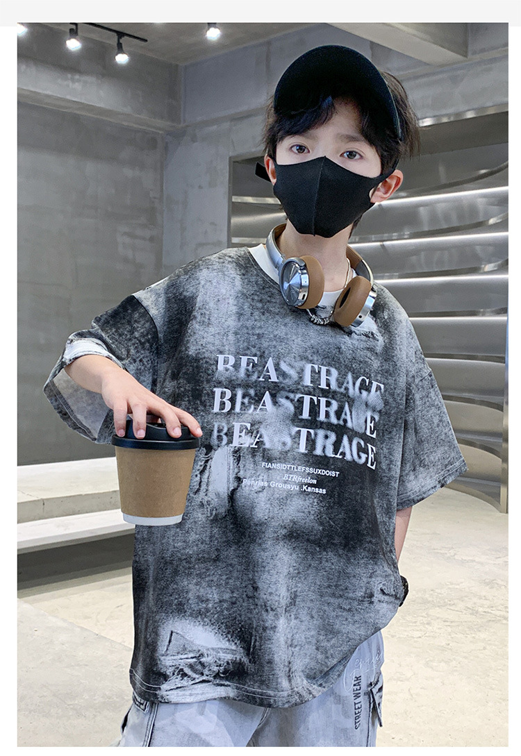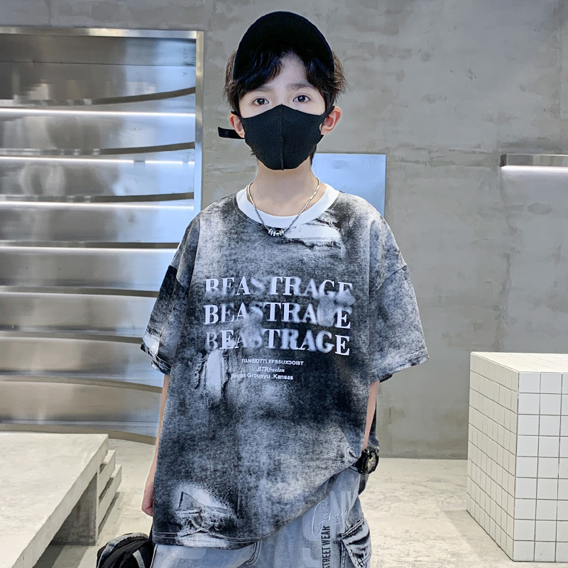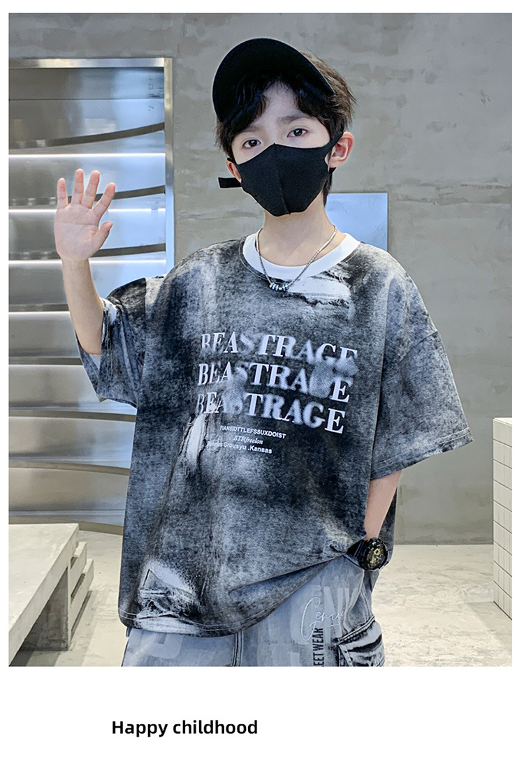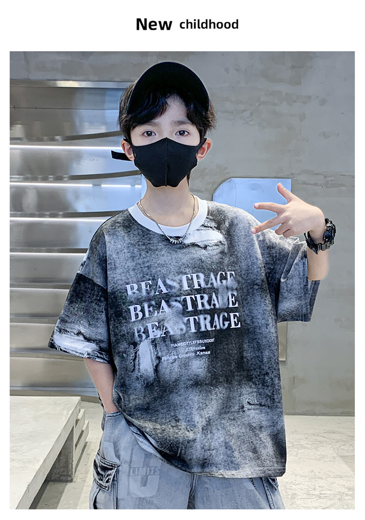 남학생 반팔 티셔츠 여름 2025 년 새 어린이 여름 반소매 소년 큰 아이들 여름 더피 핸즈섬 스타일 탑 트렌디 T스토어 가기