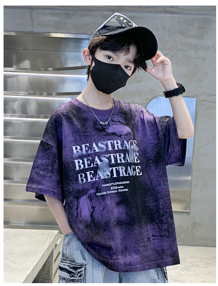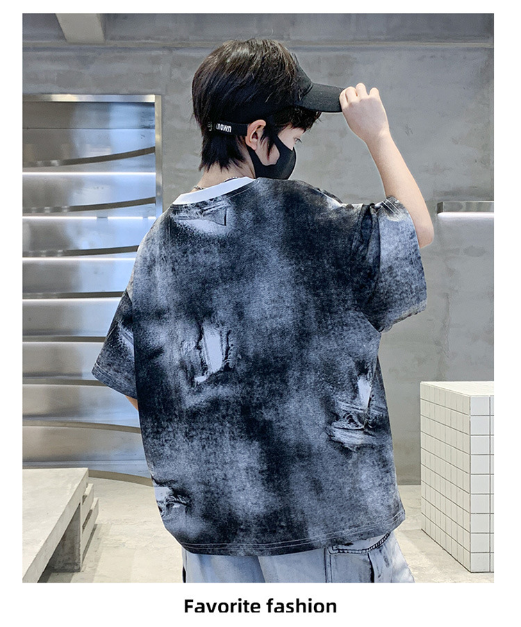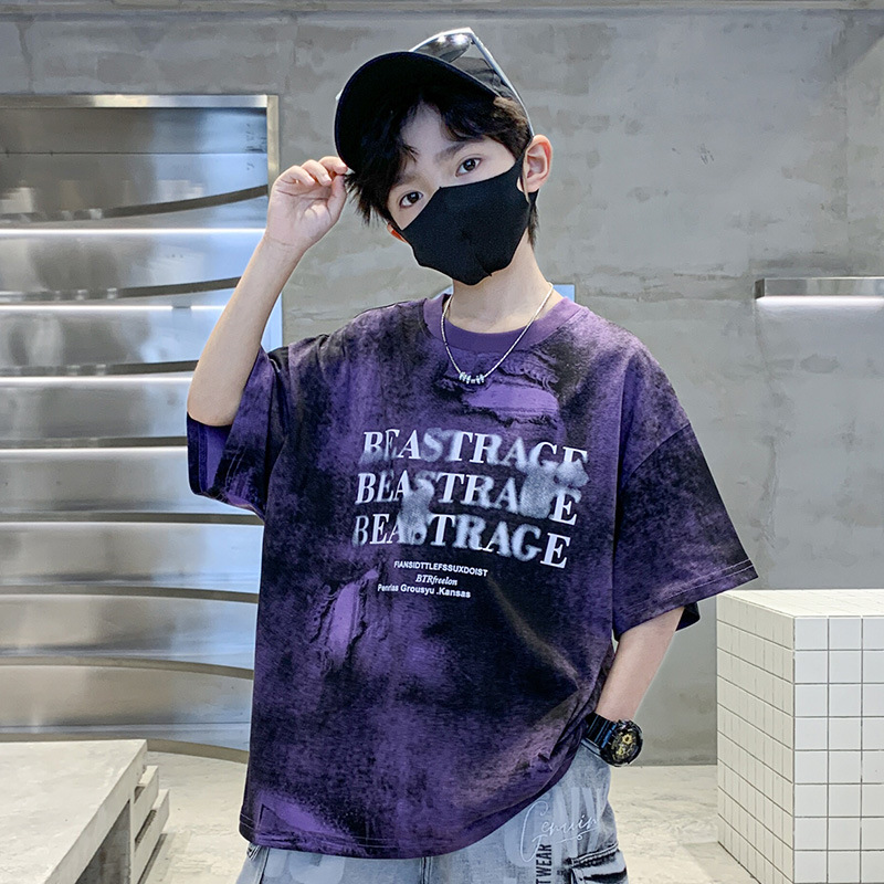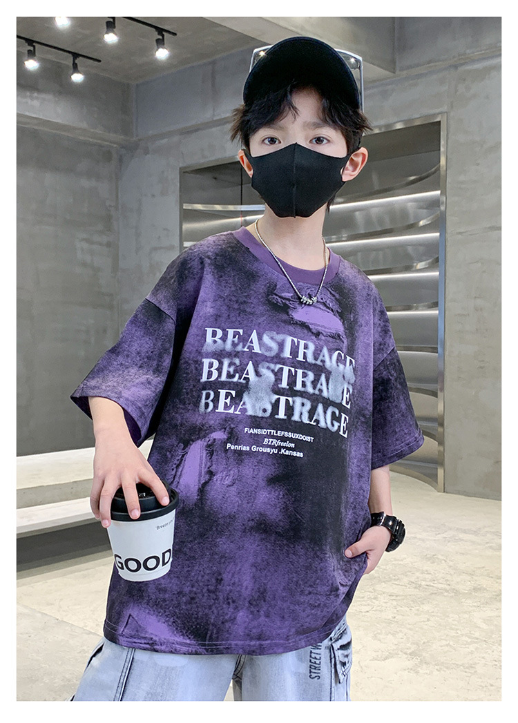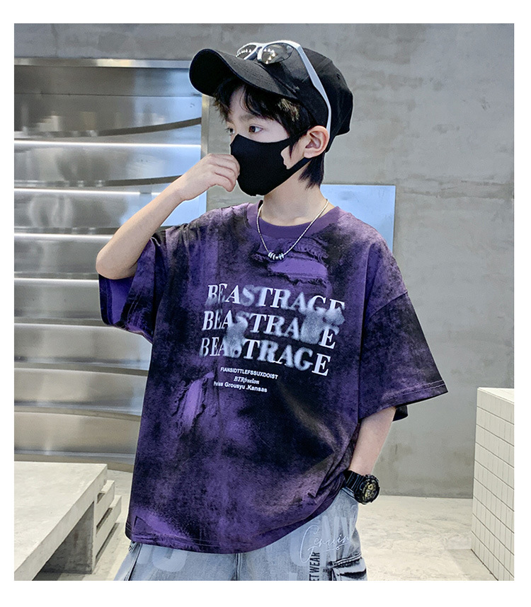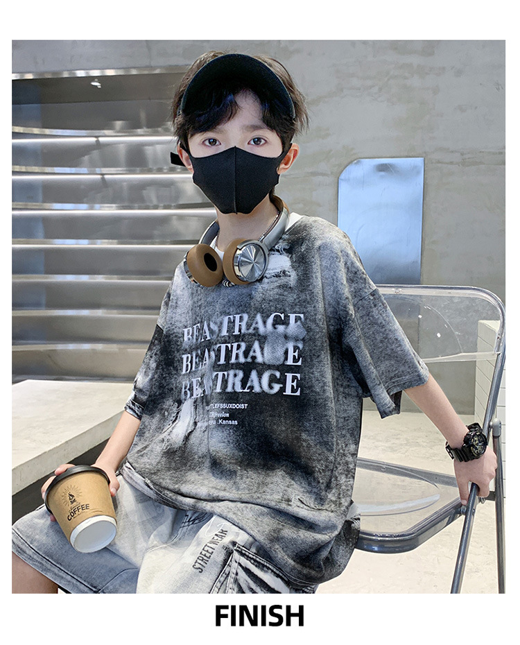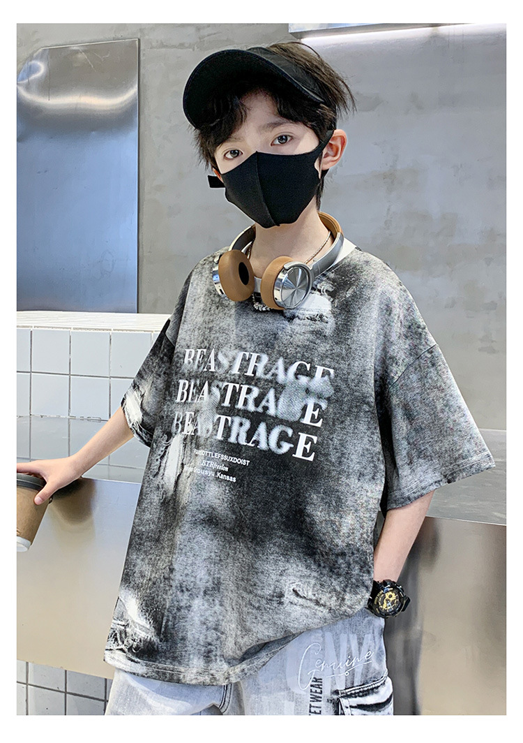 남학생 반팔 티셔츠 여름 2025 년 새 어린이 여름 반소매 소년 큰 아이들 여름 더피 핸즈섬 스타일 탑 트렌디 T스토어 가기