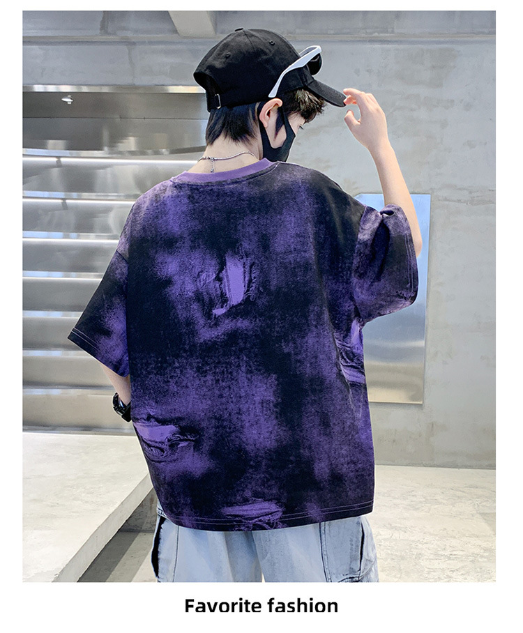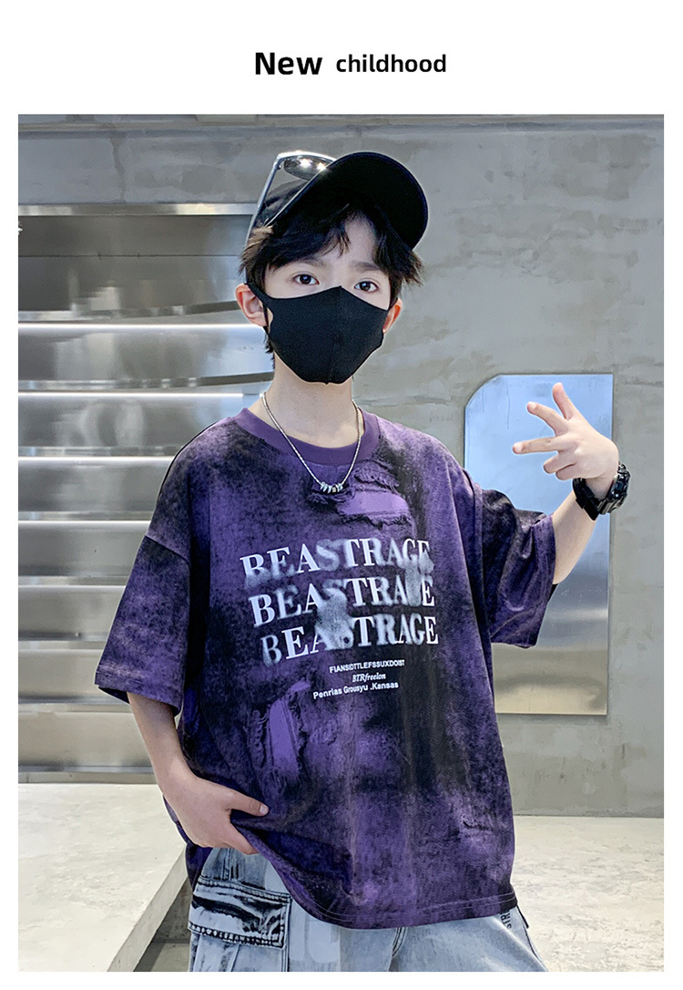 남학생 반팔 티셔츠 여름 2025 년 새 어린이 여름 반소매 소년 큰 아이들 여름 더피 핸즈섬 스타일 탑 트렌디 T