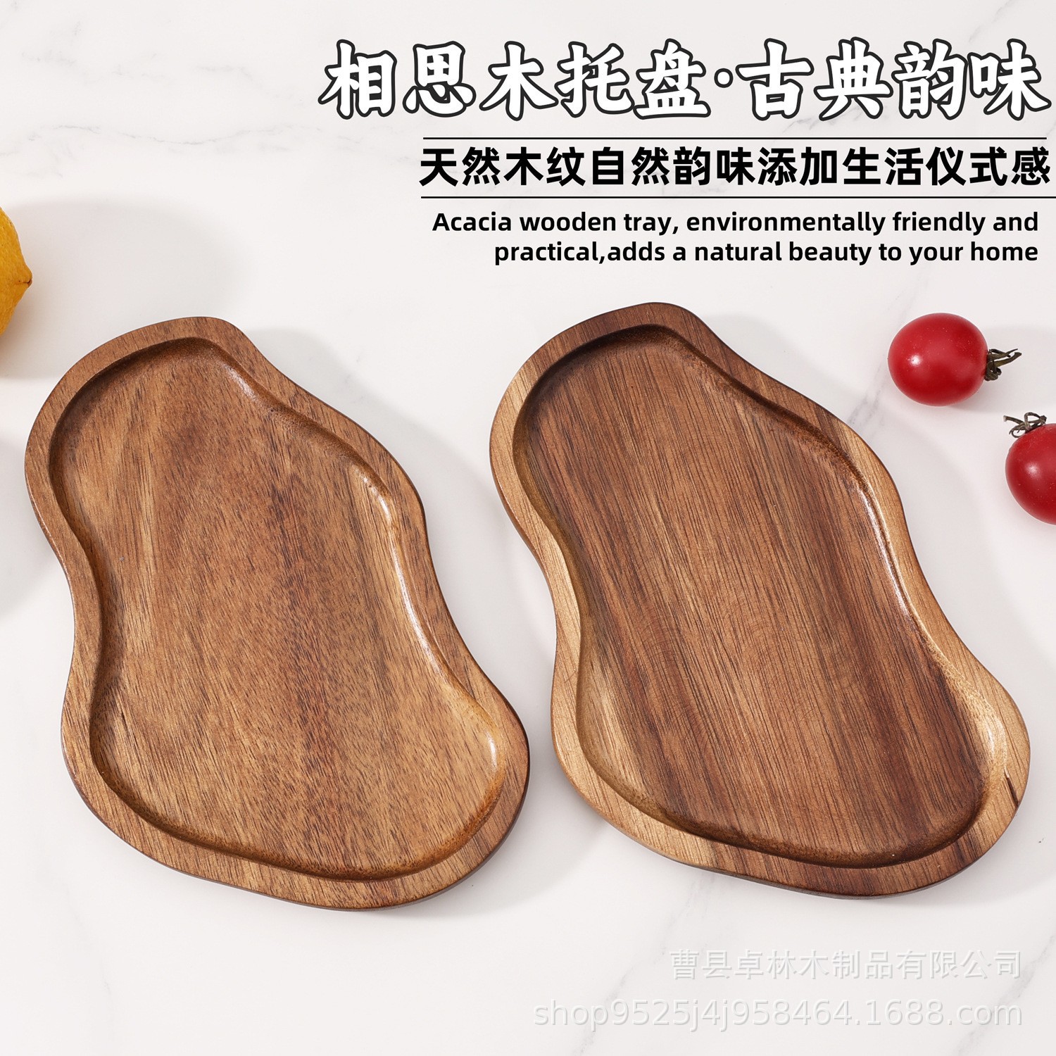 국경 간 아카시아 나무 창조적 인 일본 단단한 나무 트레이 일본식 가정용 건조 버블 트레이 불규칙한 과일 트레이 스낵 차 트레이