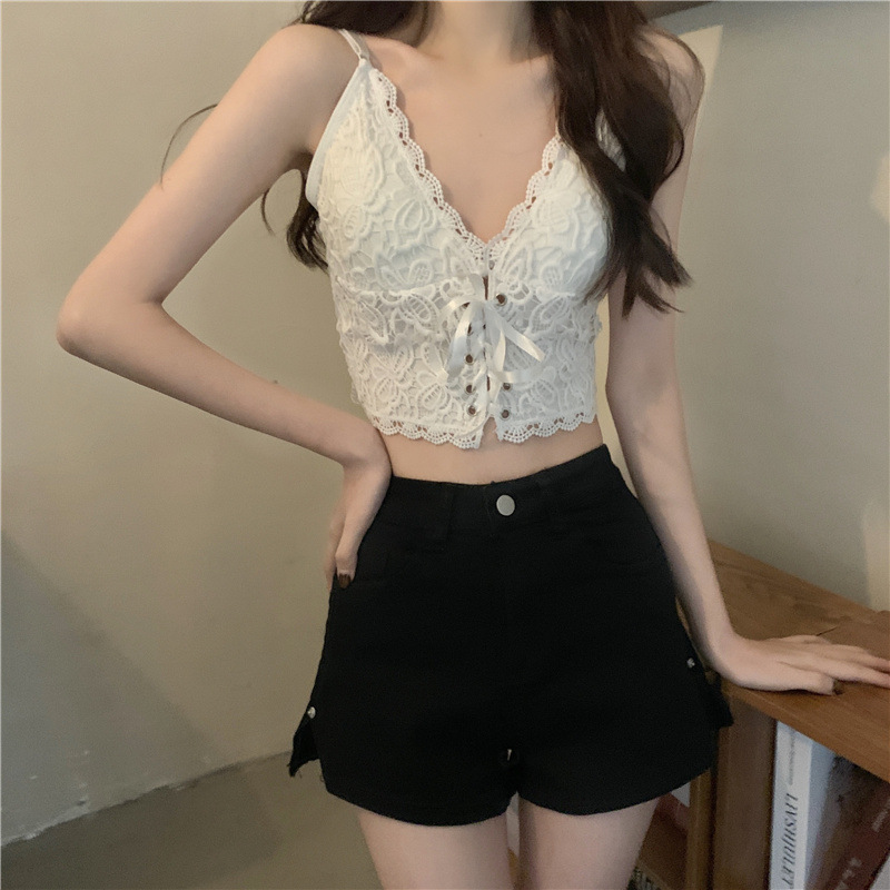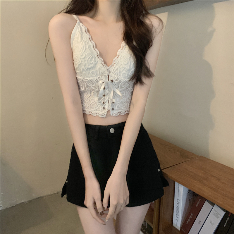 초봄 프렌치 핫걸 캐미솔 아우터 디자인, 가슴 패드가 있는 여성용 다용도 숏탑스토어 가기