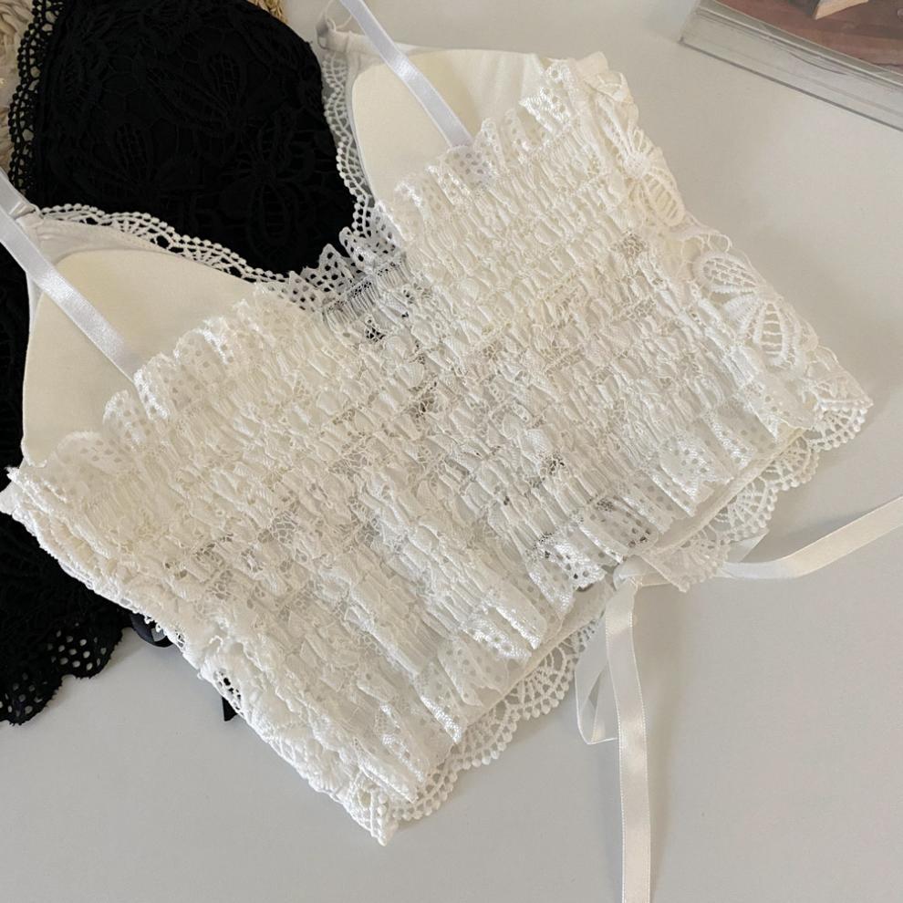 초봄 프렌치 핫걸 캐미솔 아우터 디자인, 가슴 패드가 있는 여성용 다용도 숏탑