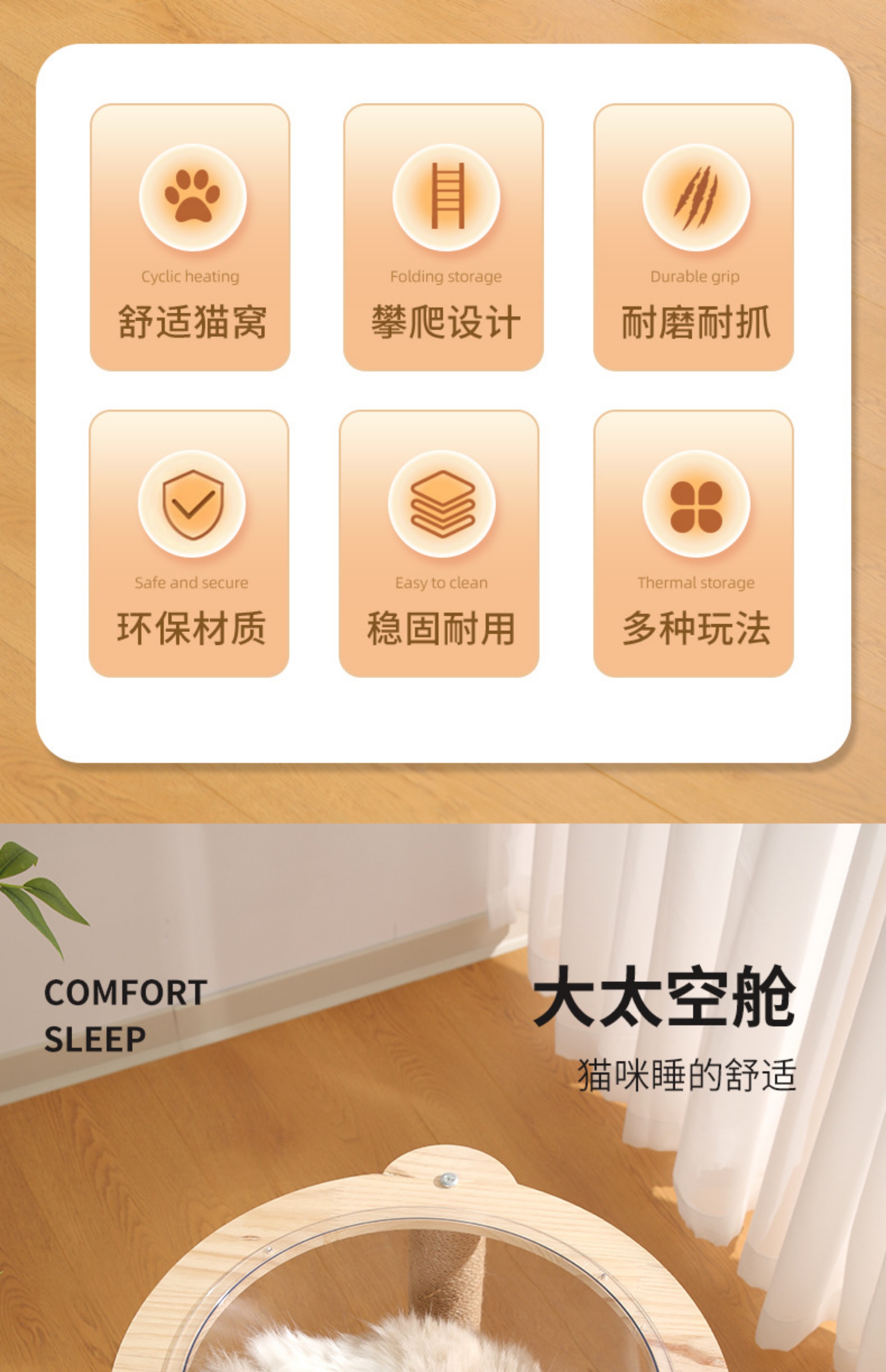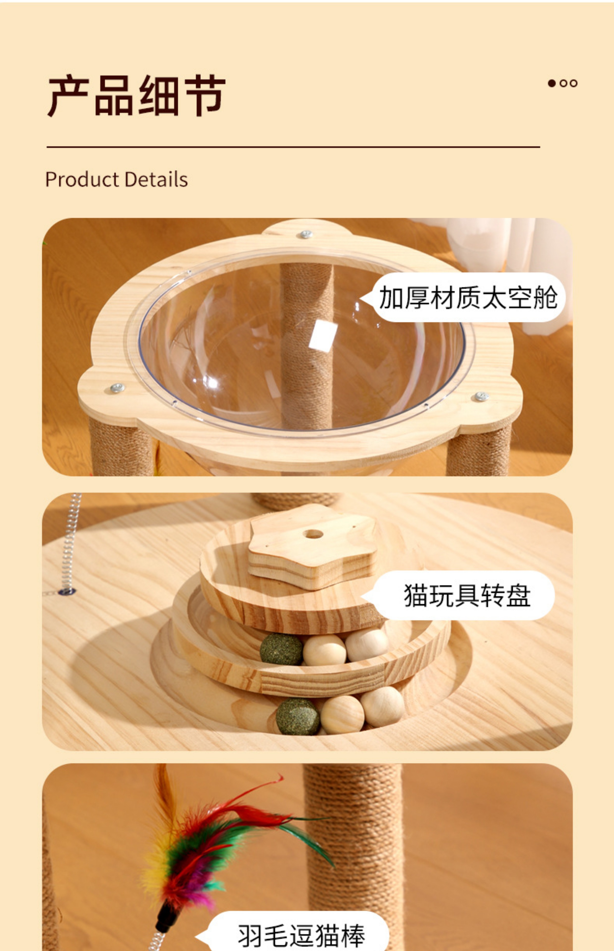 소형 우주 캡슐 고양이 클라이밍 프레임, 고양이 장난감, 자기 자극 및 지루함 해소, 고양이 둥지 스크래치 보드, 내마모성 및 부스러기 없는 일체형 고양이 발톱 기둥