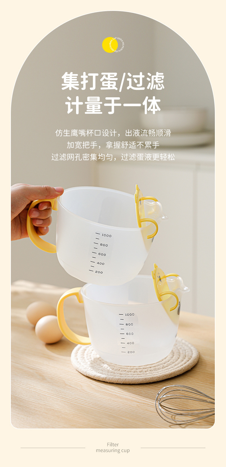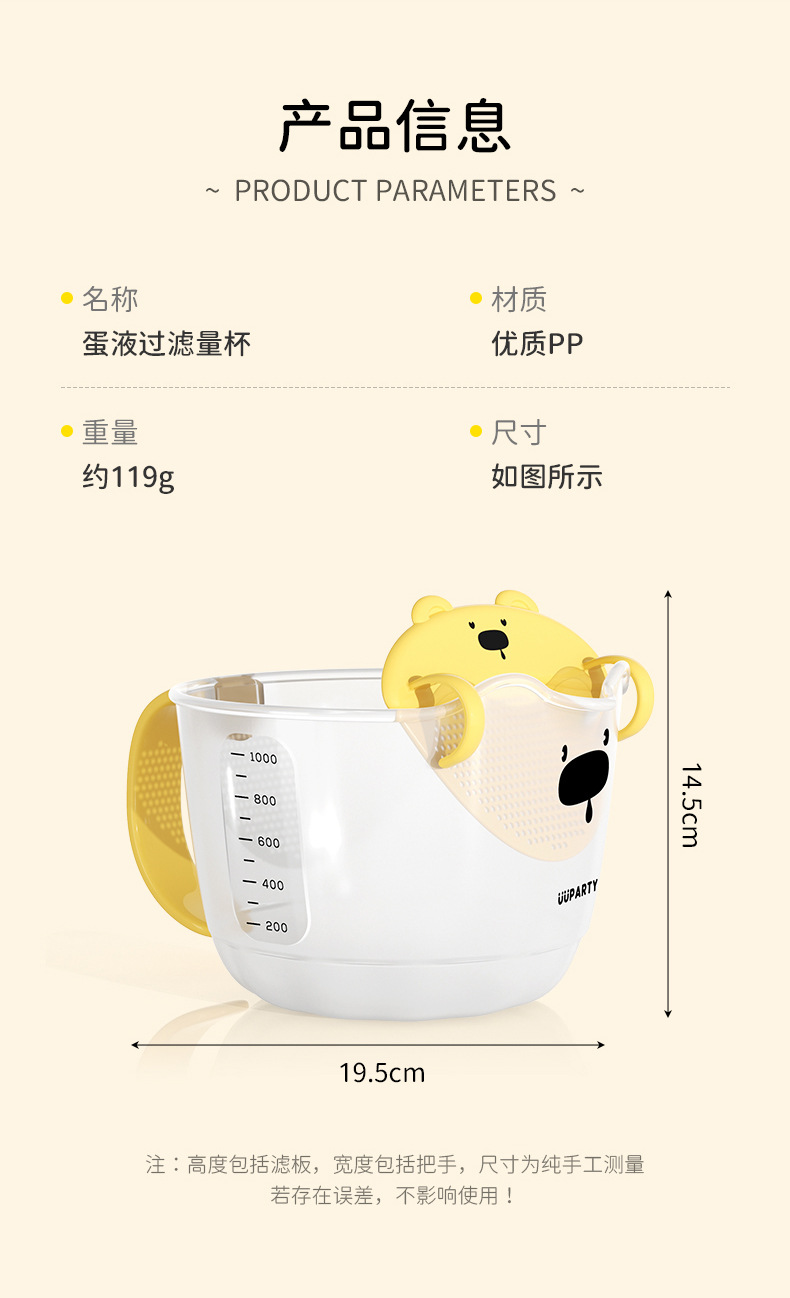 名称:小鸭蛋液过滤计量杯