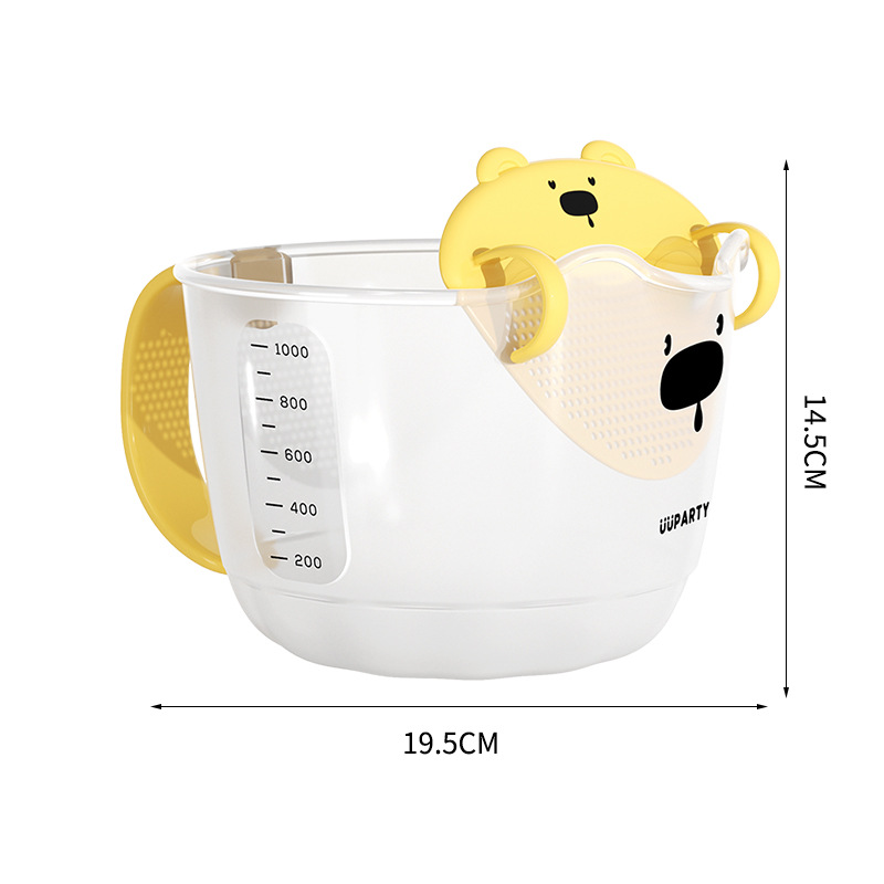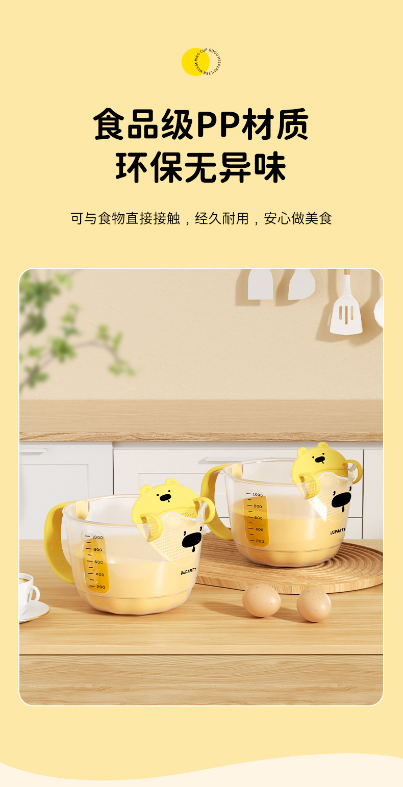 계란 액체 필터 계량 컵 스케일 만화 계란 필터가있는 베이킹 주방 쌀 그릇 계량 플라스틱 계란 비터 컵