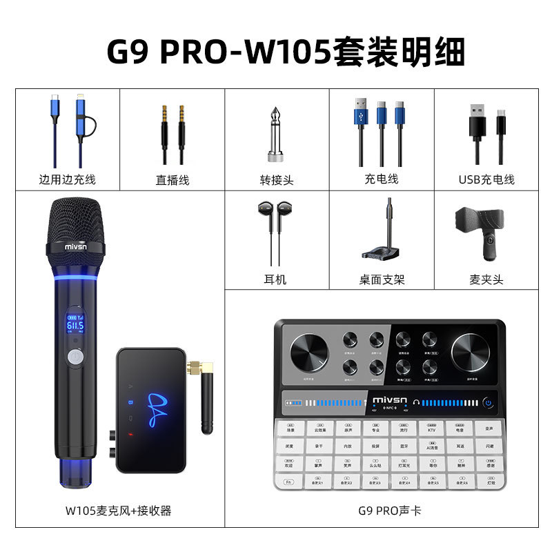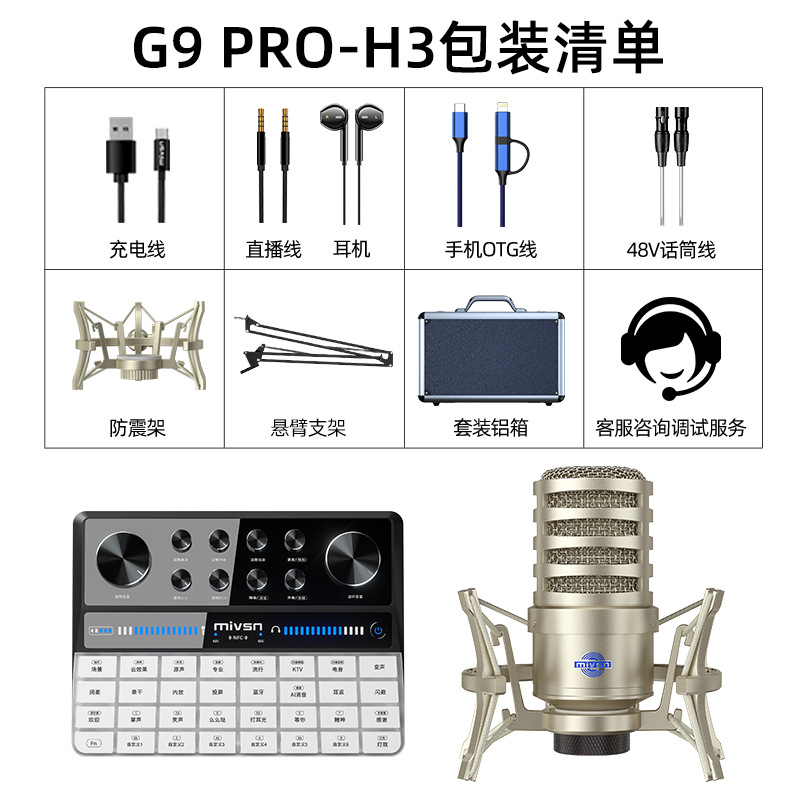Meisheng G9pro 휴대 전화 라이브 방송 장비 사운드 카드 전용 컴퓨터 노래방 전문 마이크 인터넷 연예인 노래 전체 세트