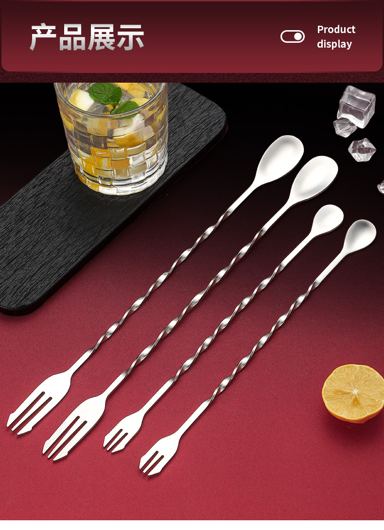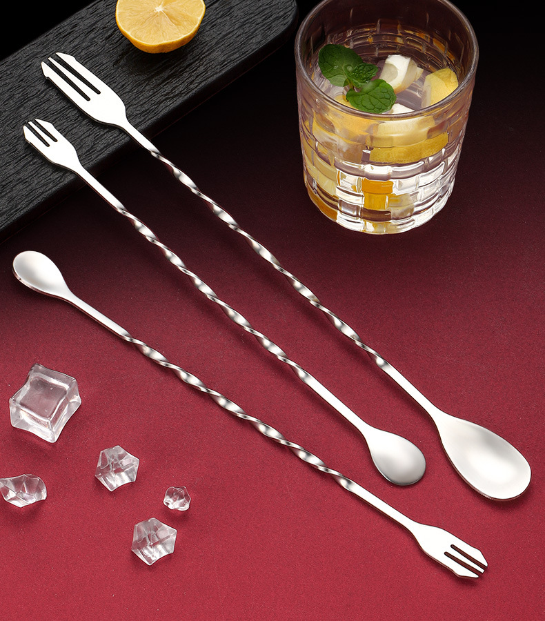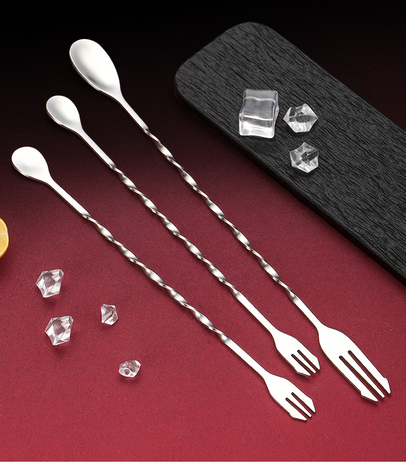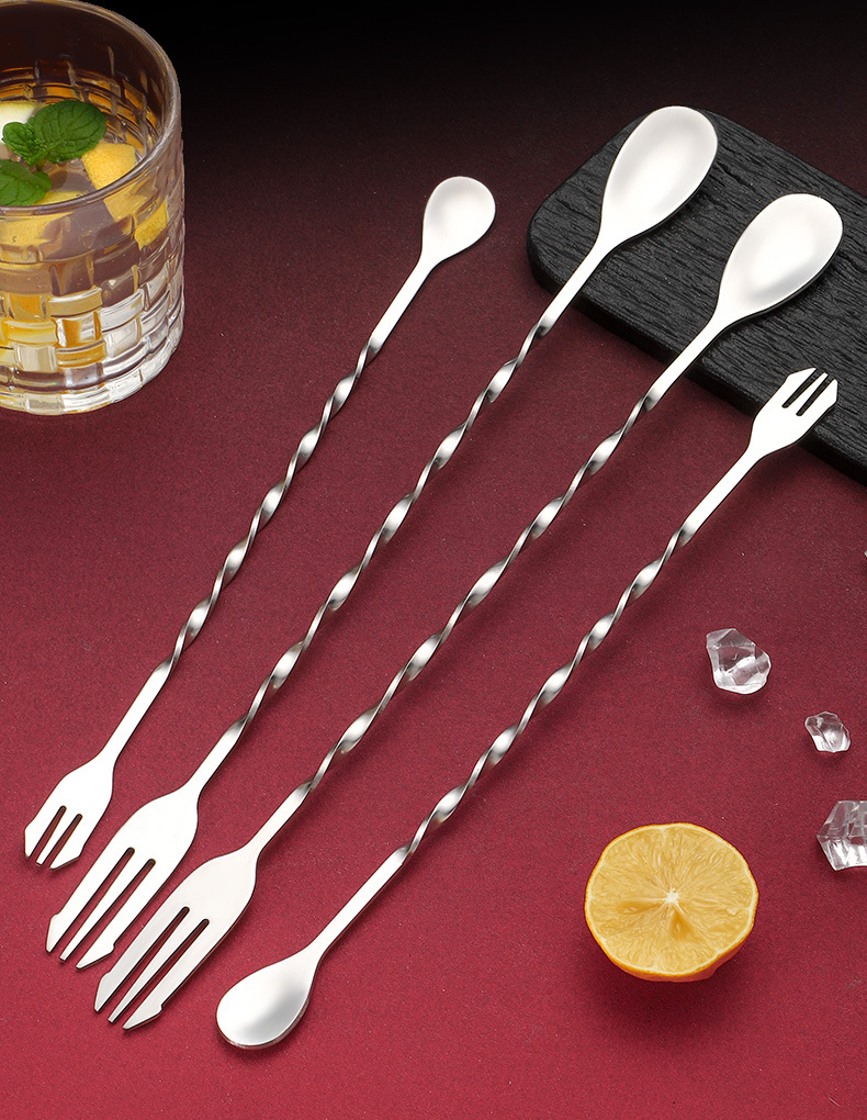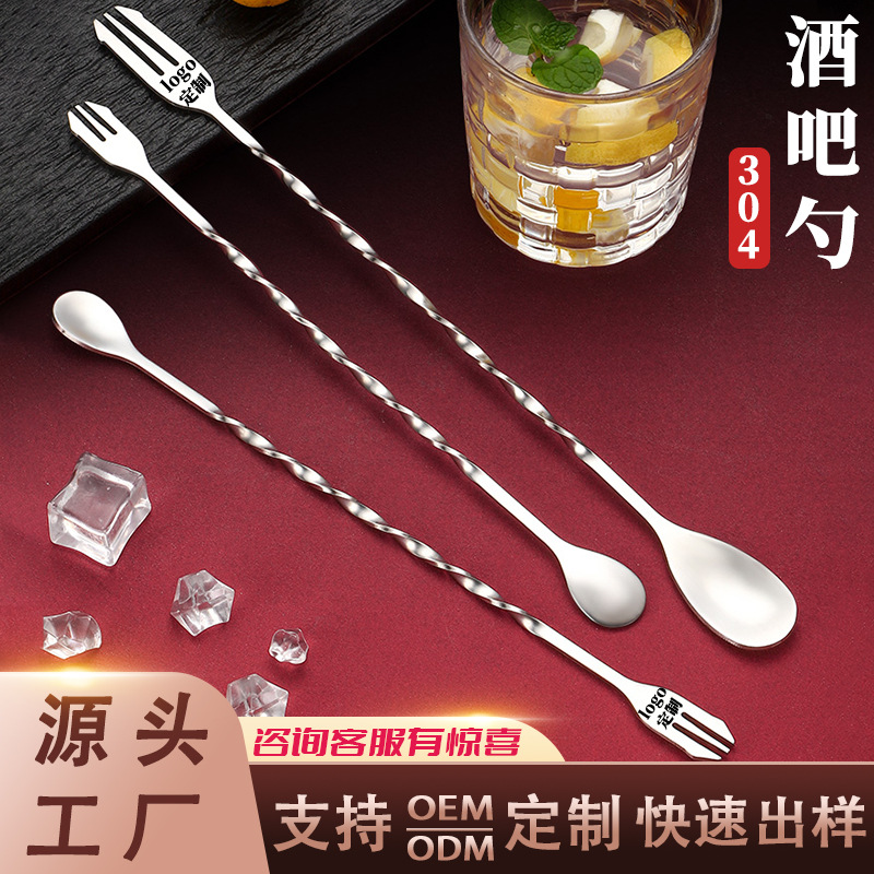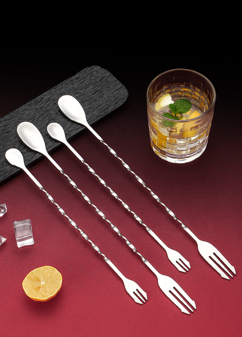 바 스푼 304 스테인레스 스틸 클리어 바 우유 차 커피 칵테일 혼합 스푼 긴 손잡이 스레드 혼합 스푼