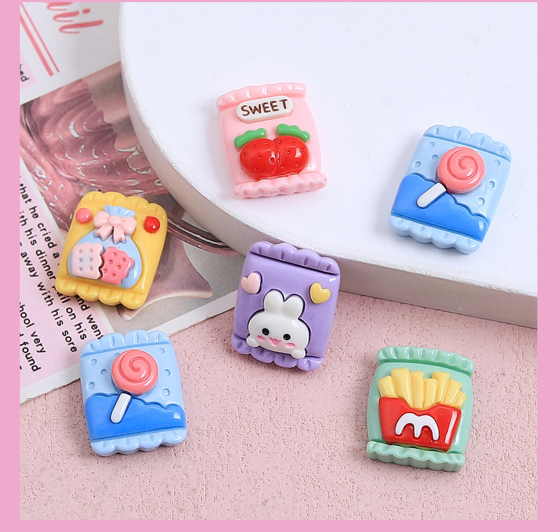 스낵 가방, 음식 및 장난감, 만화 DIY 쥬얼리 액세서리, 크림 접착제 수지 소형 액세서리, 구멍 신발 버클, 수제 재료 패키지