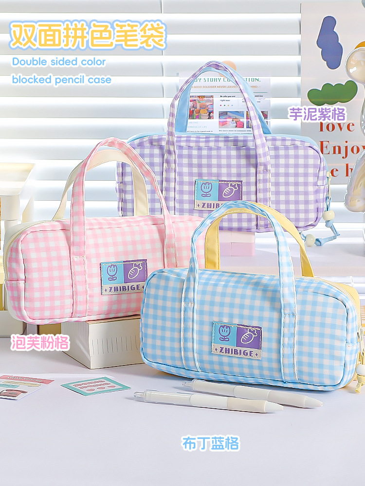 • 퍼프 핑크 그리드/양면 컬러 매칭 휴대용 필통