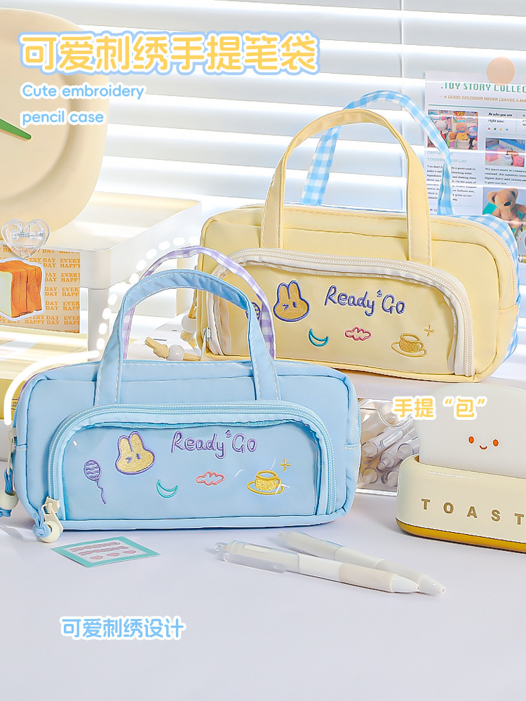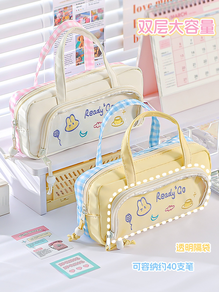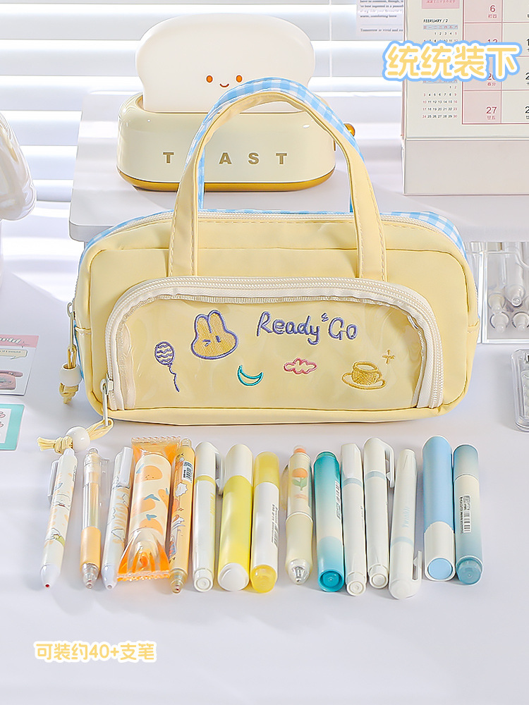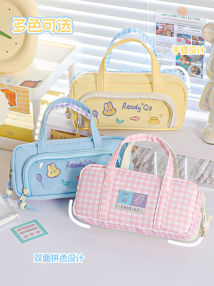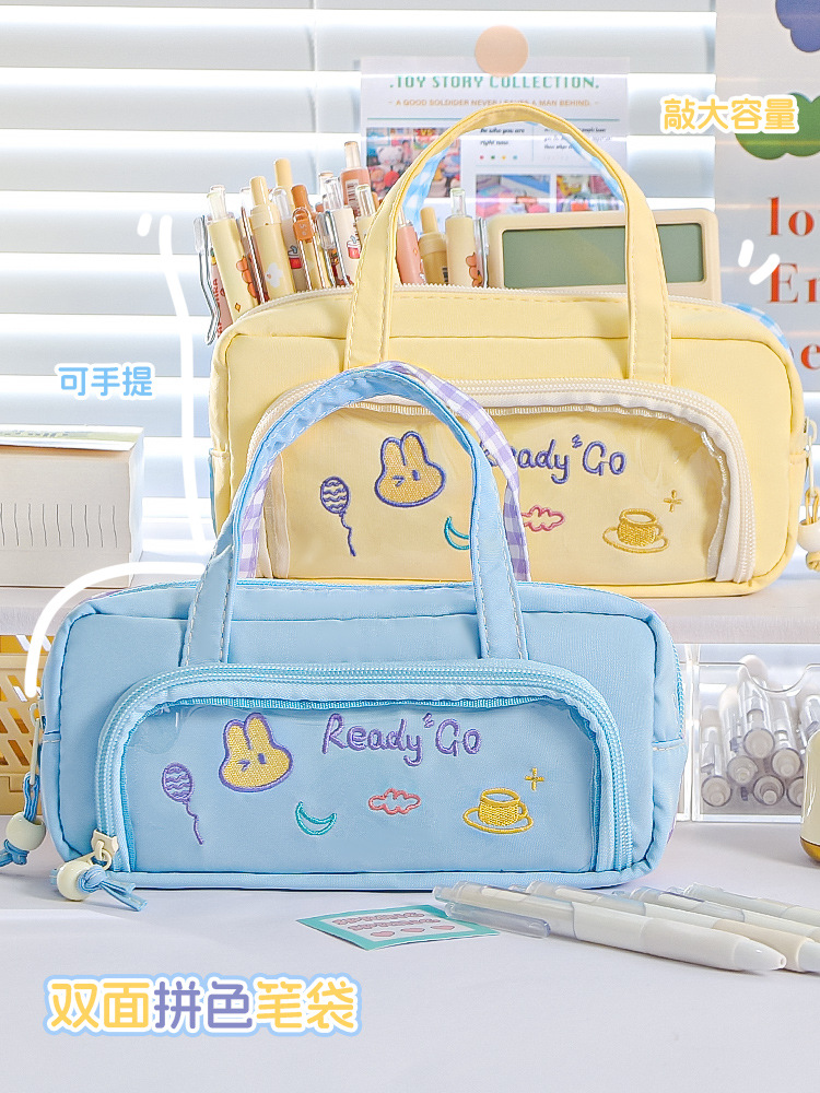 국경을 넘나드는 인기 연필 가방, 양면 컬러 매칭, 휴대용 연필 가방, 귀엽고 멋스럽고 대용량, 일본 소녀 초등학교스토어 가기