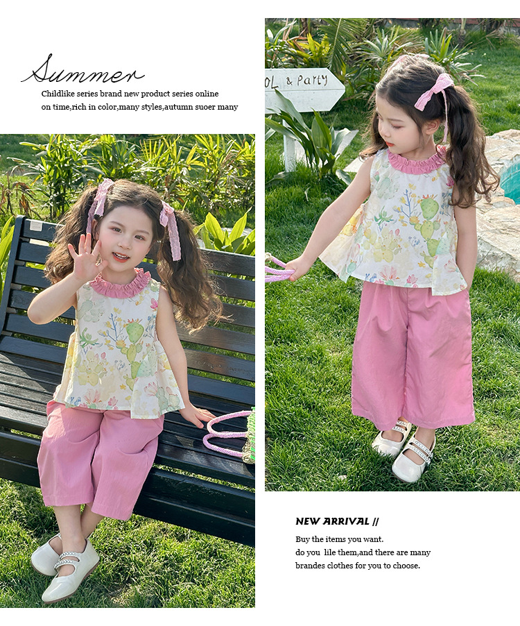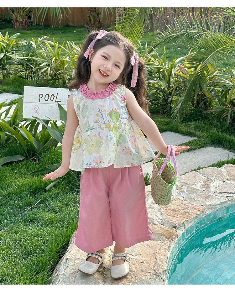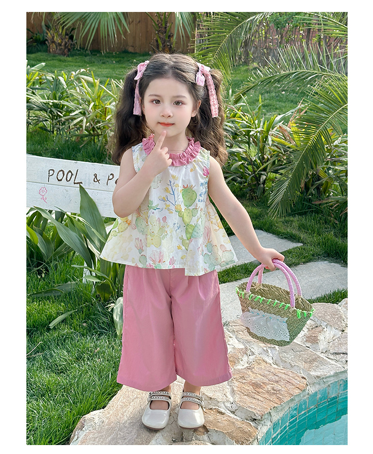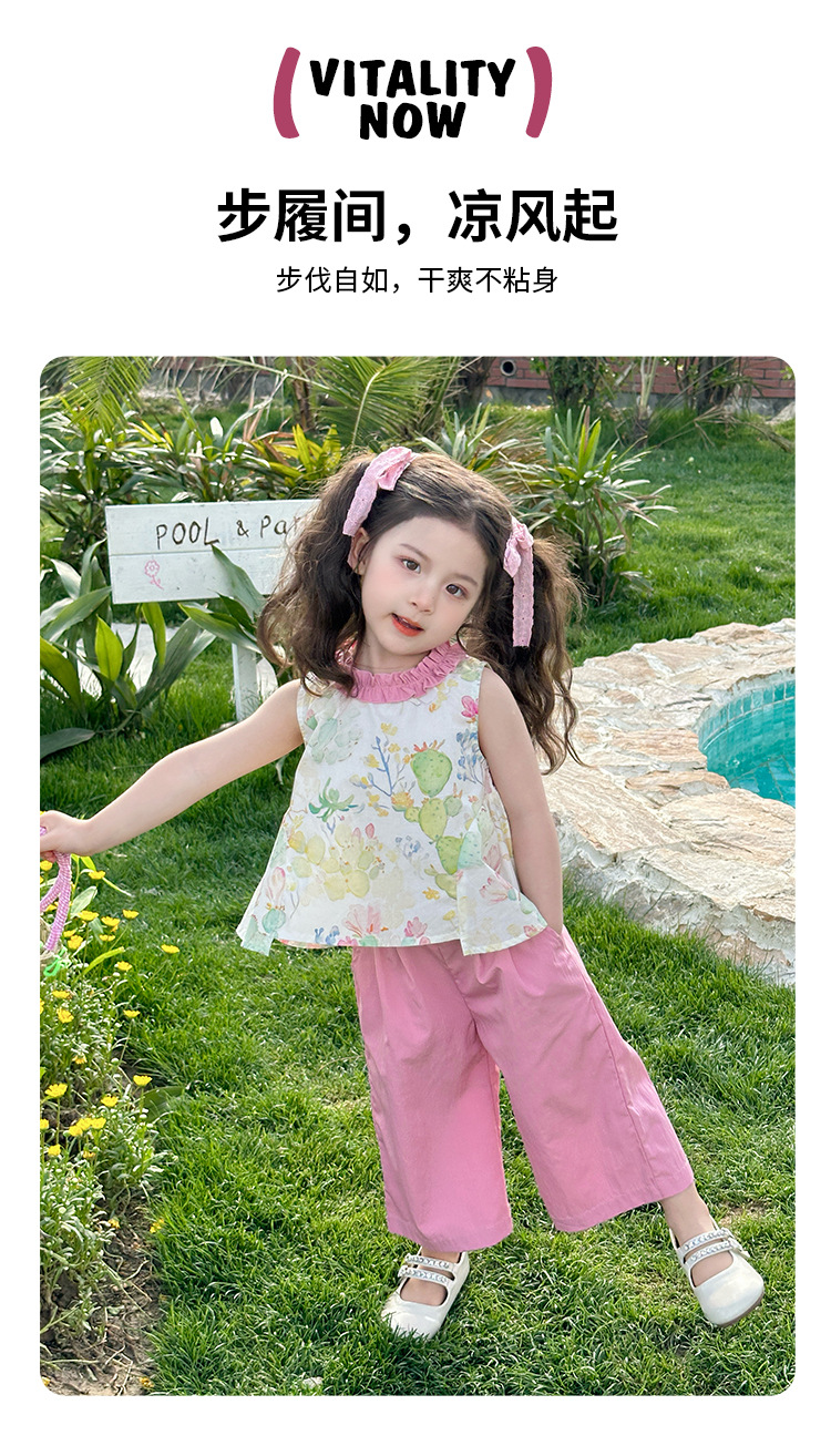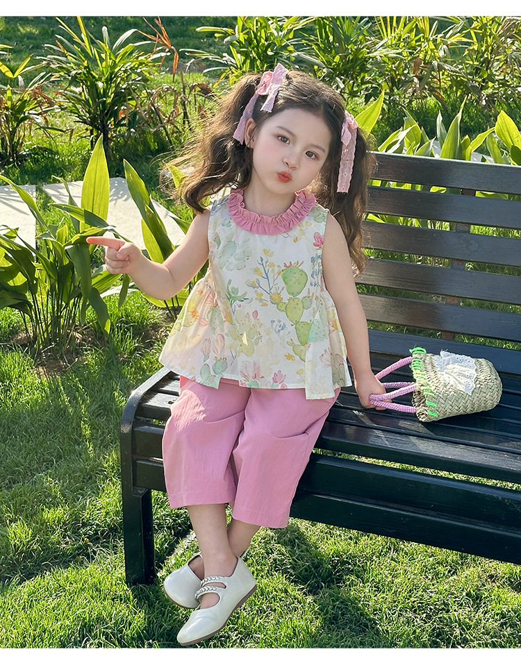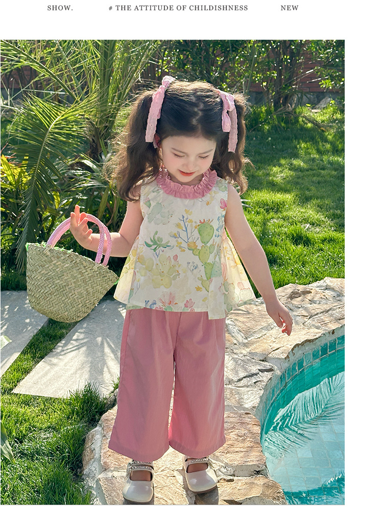 여자 선인장 야마모토 바지 세트 2025 여름 새로운 패션 소녀 세련된 투피스 어린이 여름 원피스스토어 가기