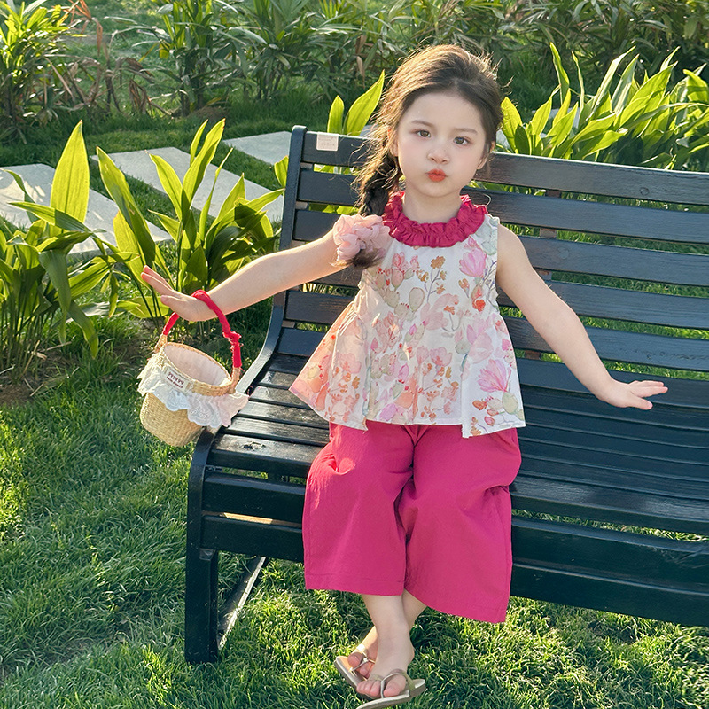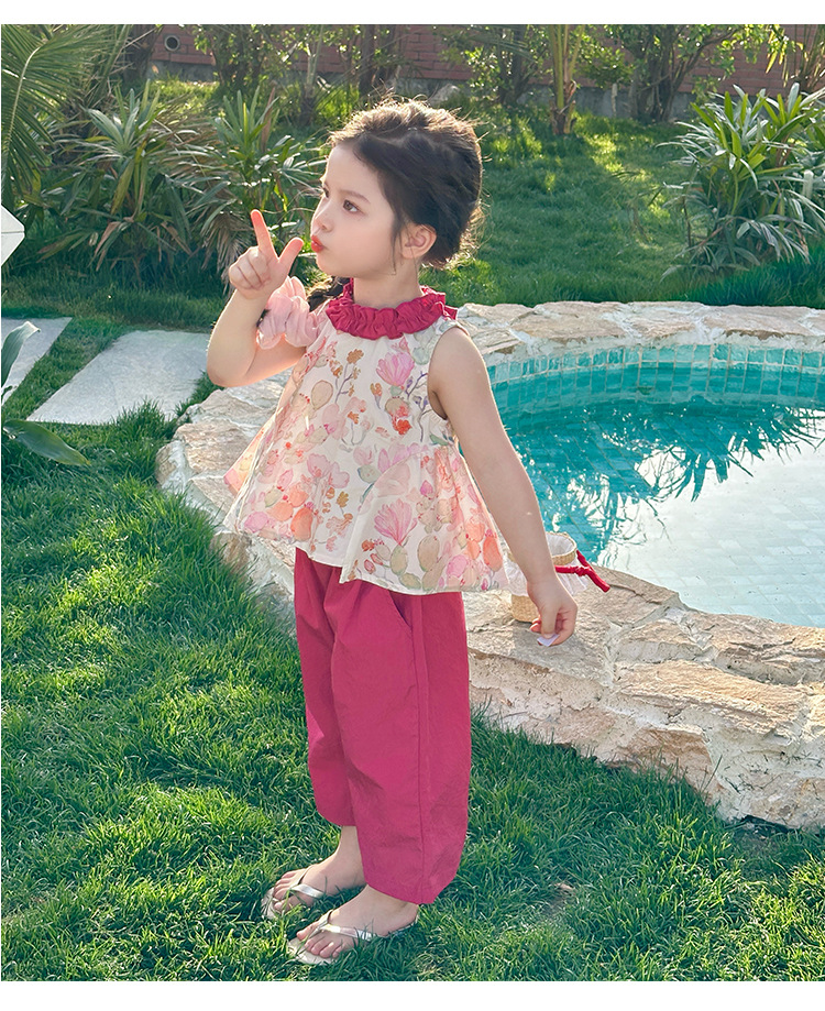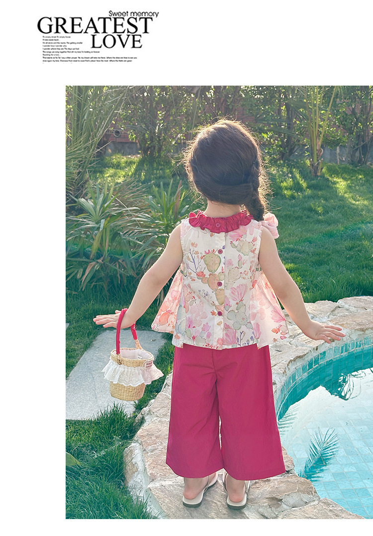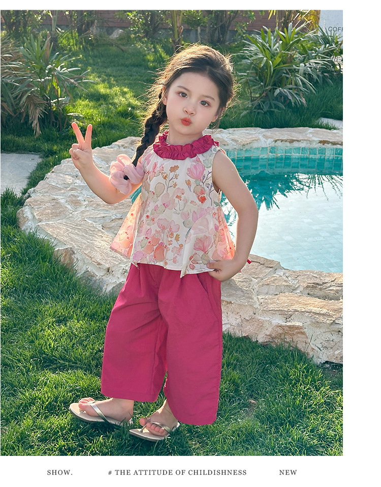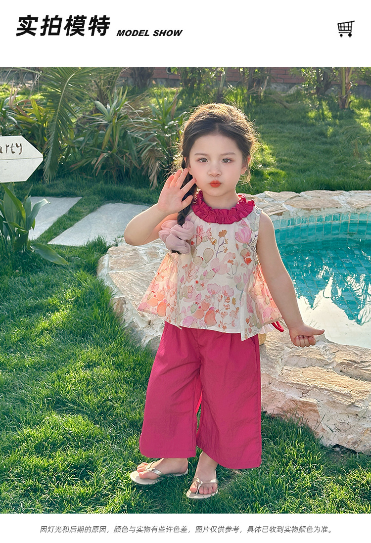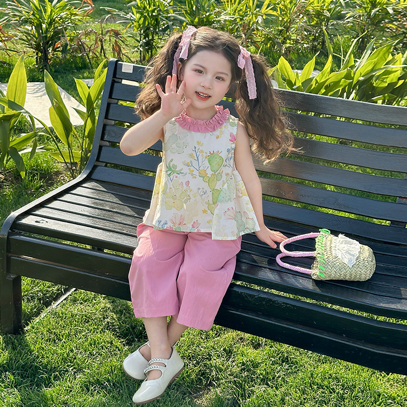 여자 선인장 야마모토 바지 세트 2025 여름 새로운 패션 소녀 세련된 투피스 어린이 여름 원피스스토어 가기