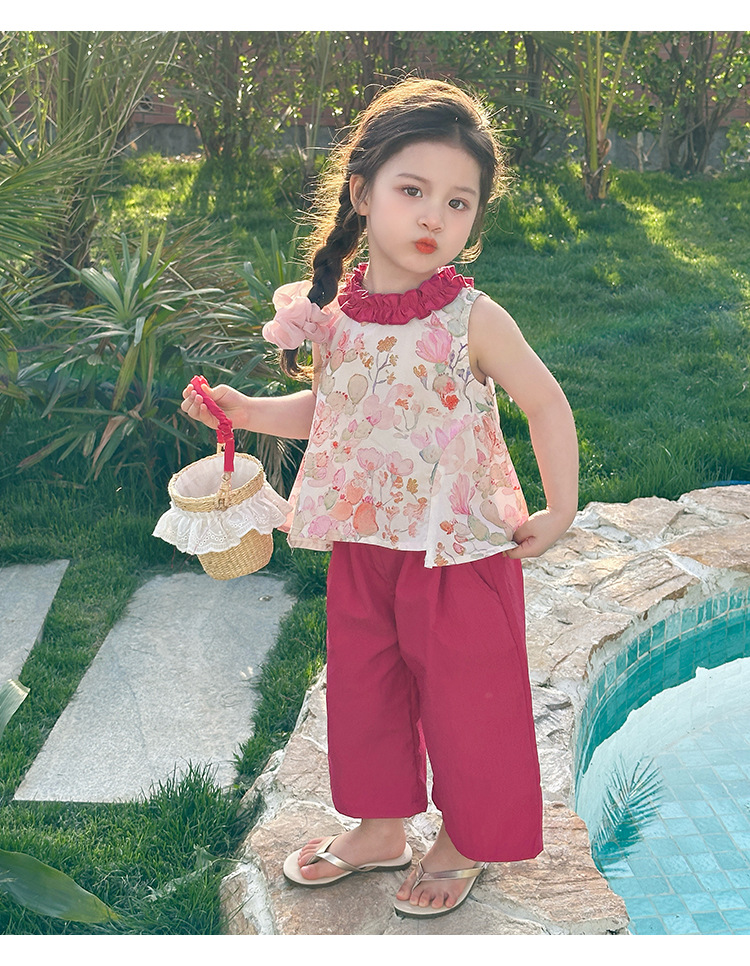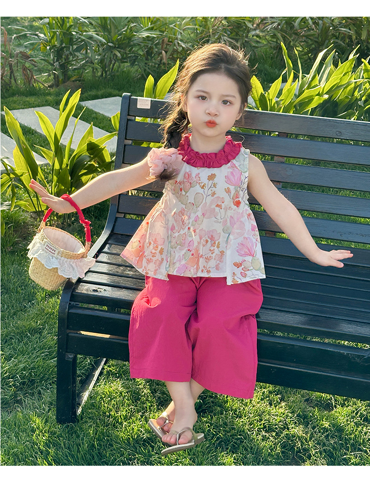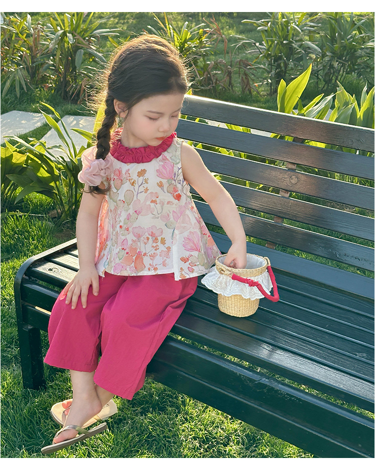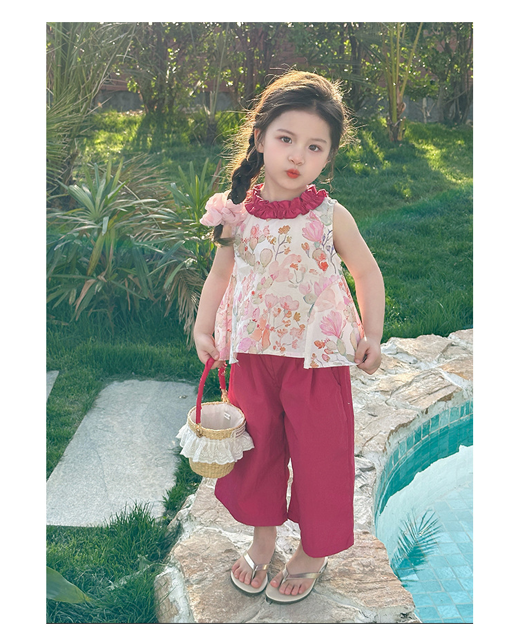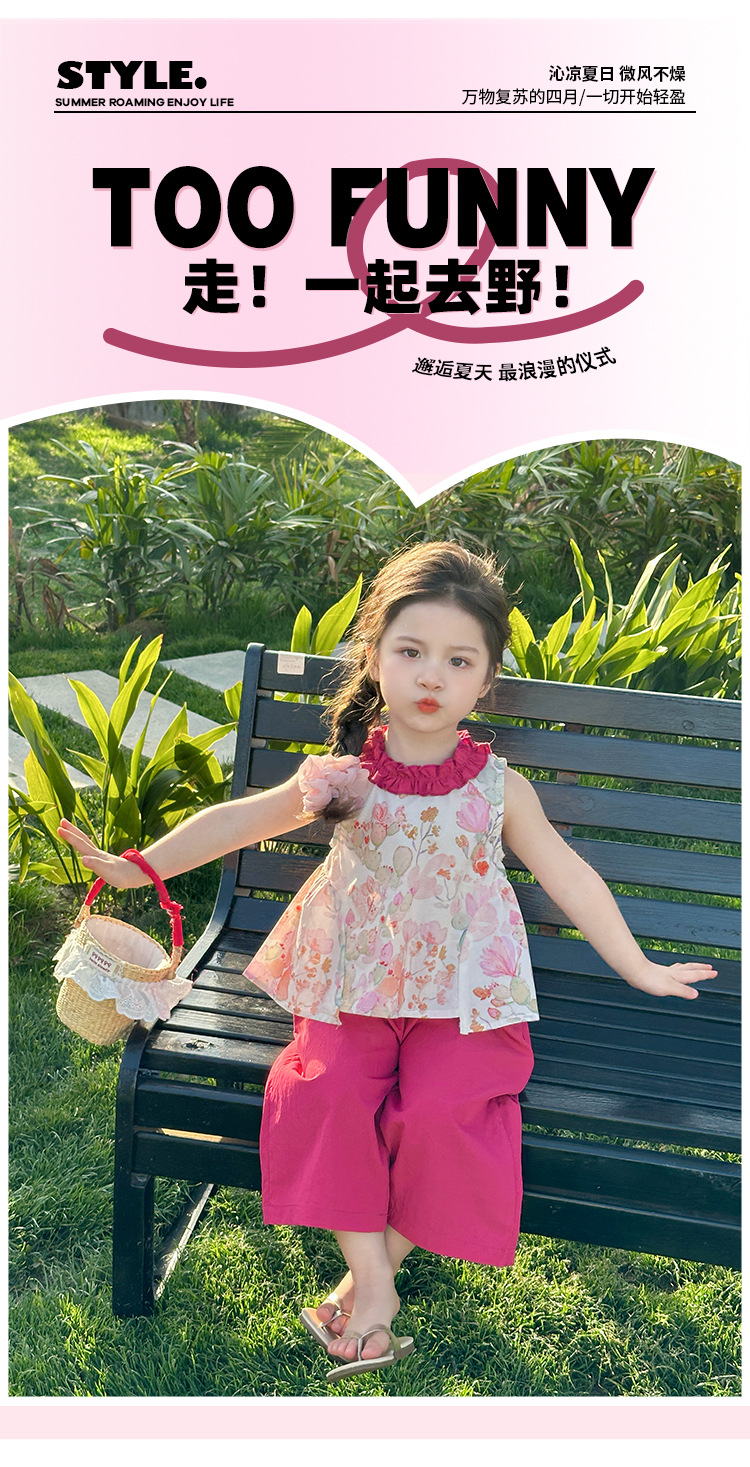 여자 선인장 야마모토 바지 세트 2025 여름 새로운 패션 소녀 세련된 투피스 어린이 여름 원피스스토어 가기
