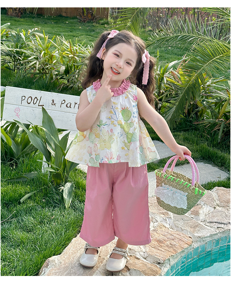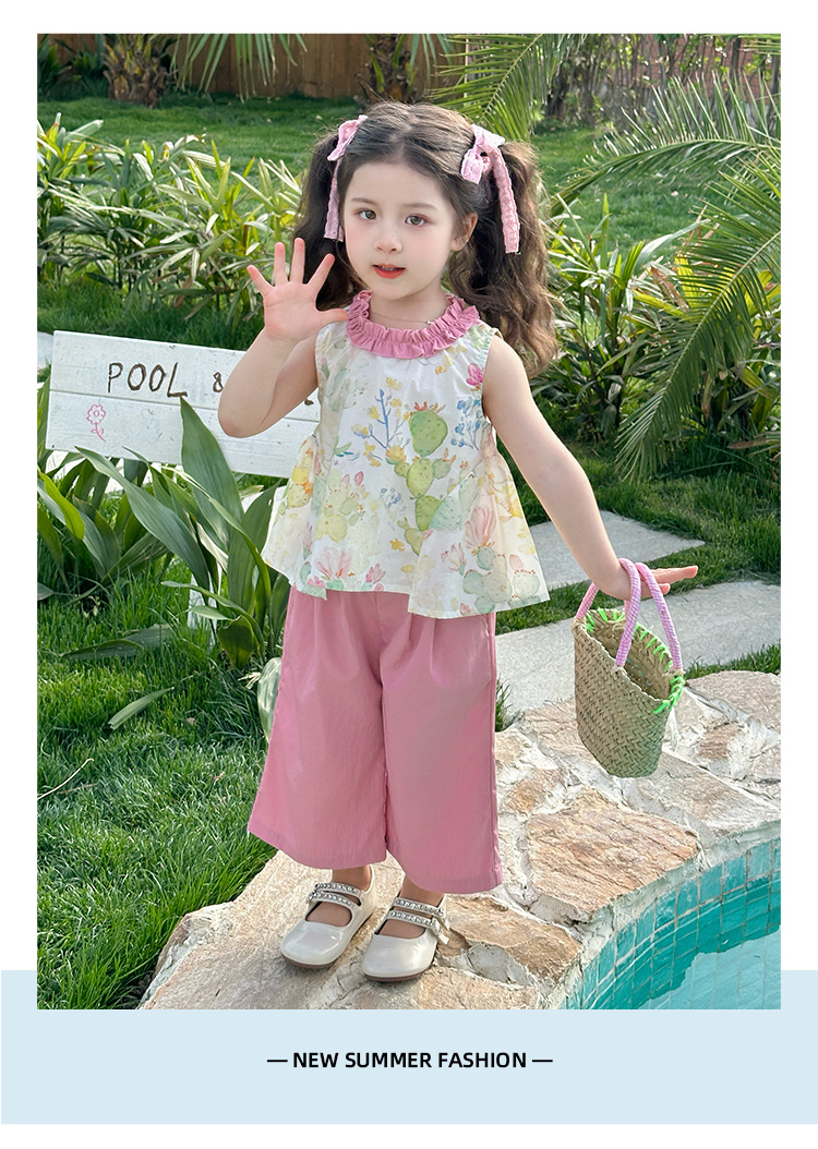 여자 선인장 야마모토 바지 세트 2025 여름 새로운 패션 소녀 세련된 투피스 어린이 여름 원피스