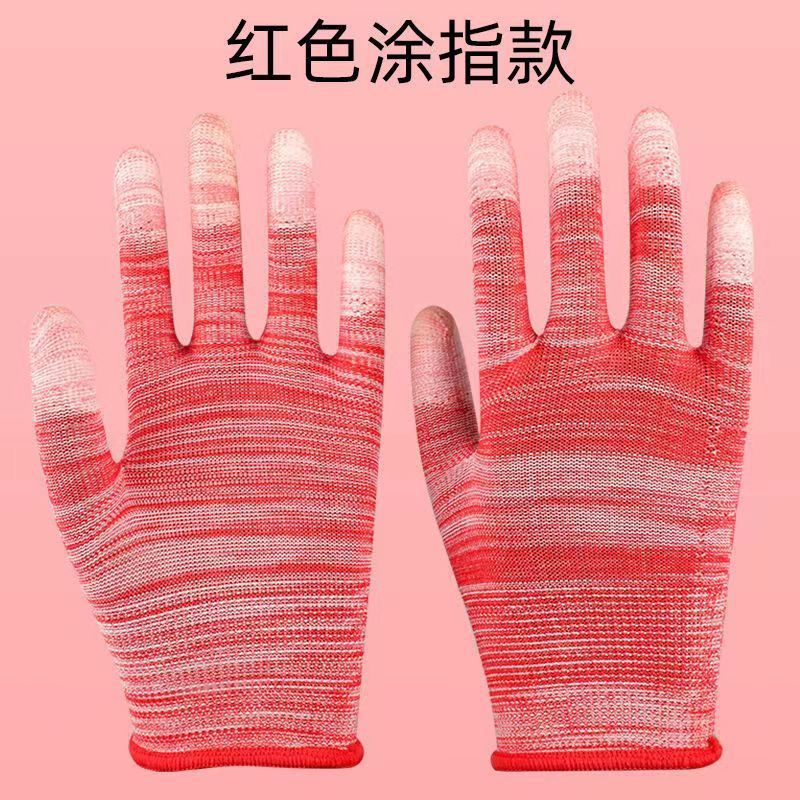 얇은 나일론 줄무늬 코팅 손가락 장갑 흰색 코팅 고무 미끄럼 방지 내마모성 전자 공장 정전기 방지 노동 보호 장갑