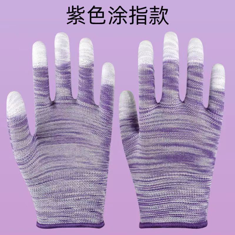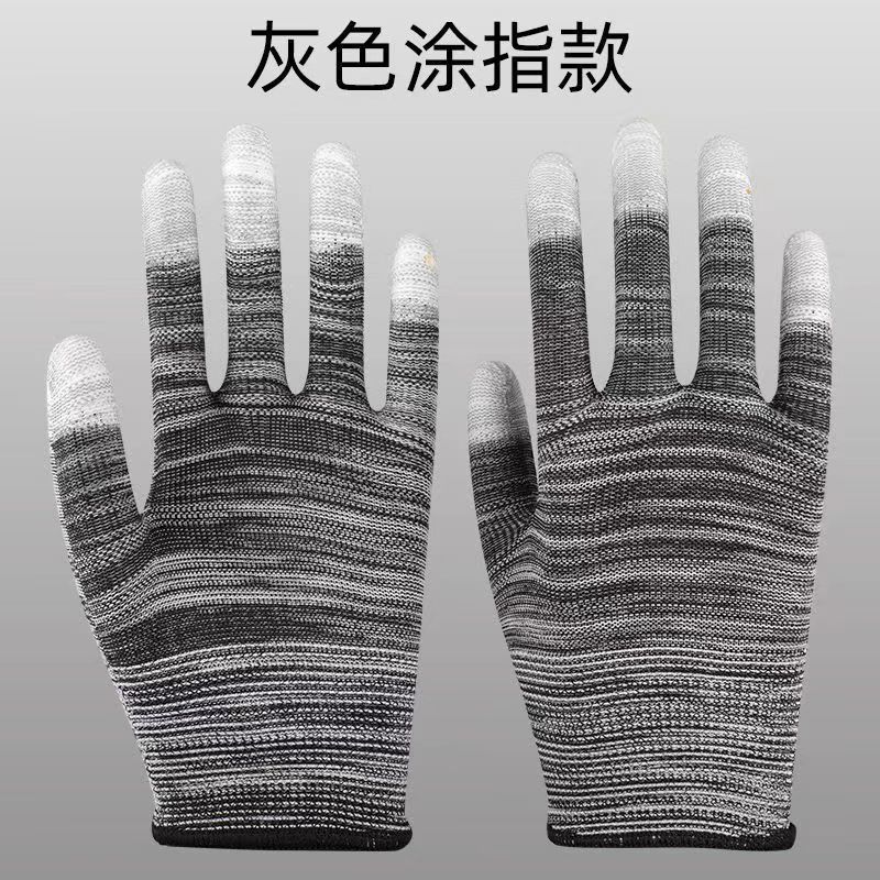 얇은 나일론 줄무늬 코팅 손가락 장갑 흰색 코팅 고무 미끄럼 방지 내마모성 전자 공장 정전기 방지 노동 보호 장갑스토어 가기