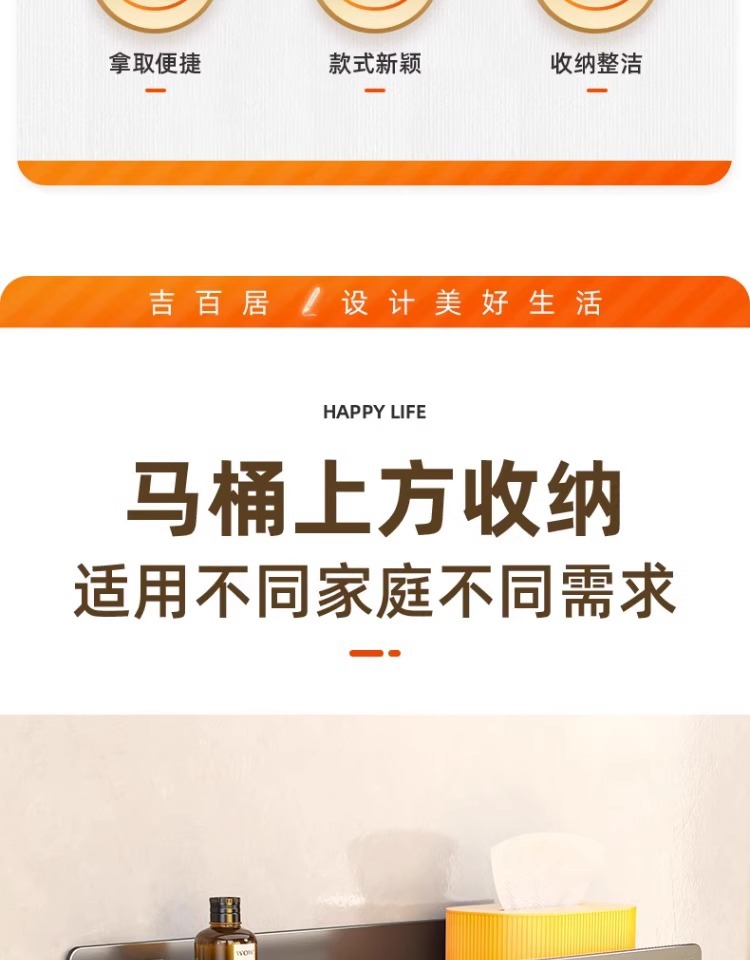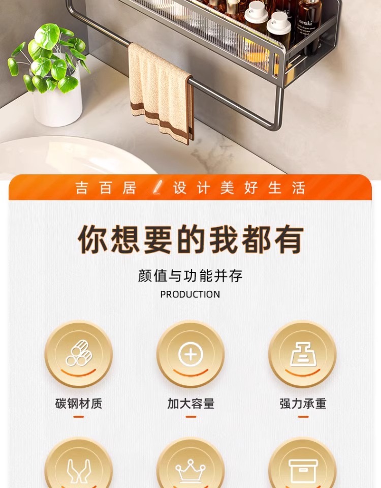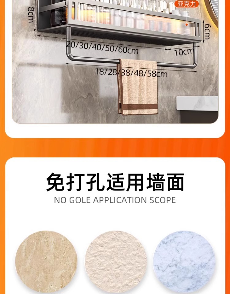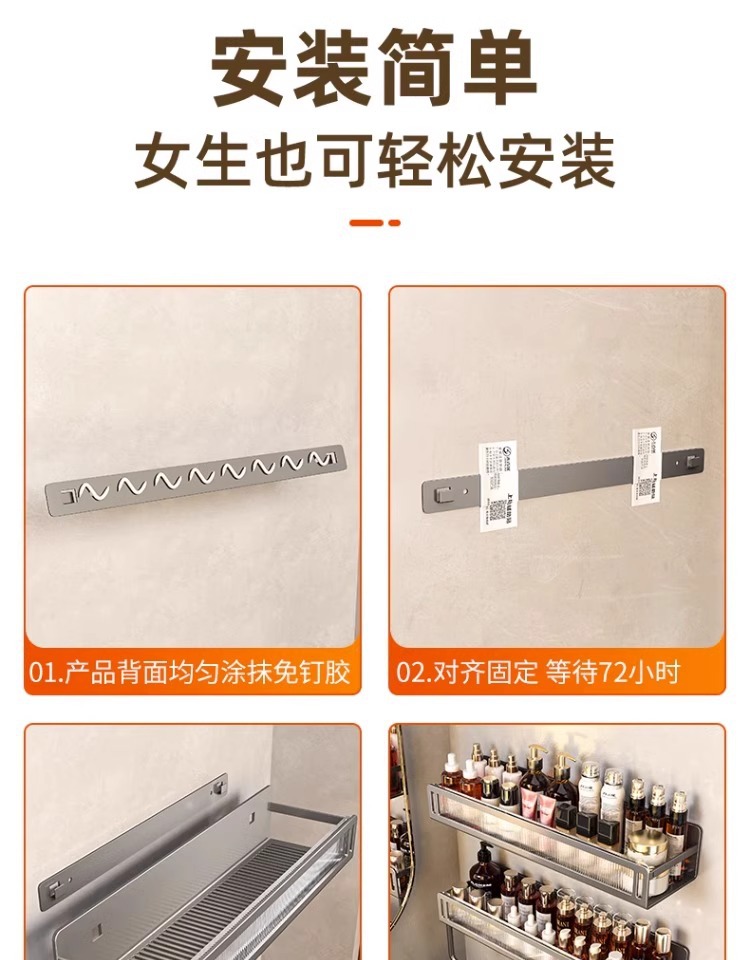 소스 공장 욕실 펀치없는 벽걸이 욕실 선반 화장실 싱크대 벽 선반