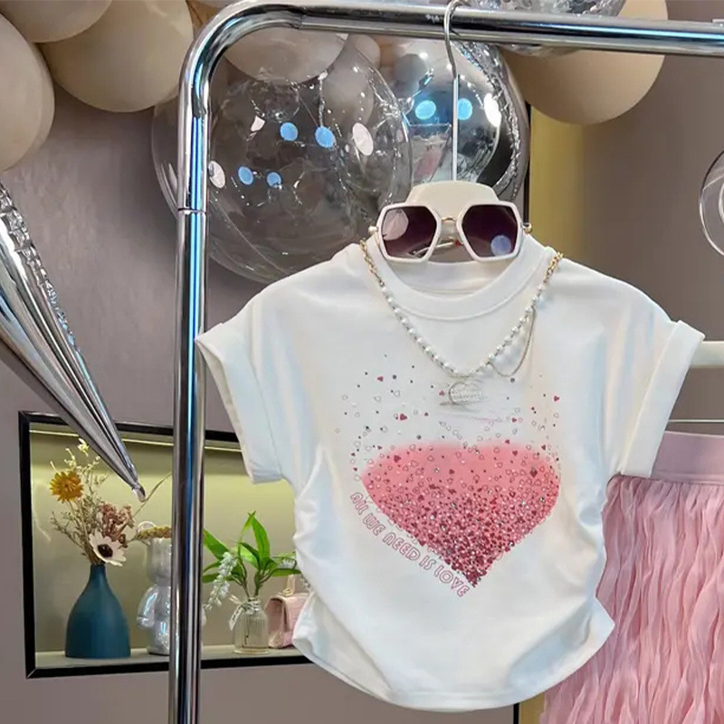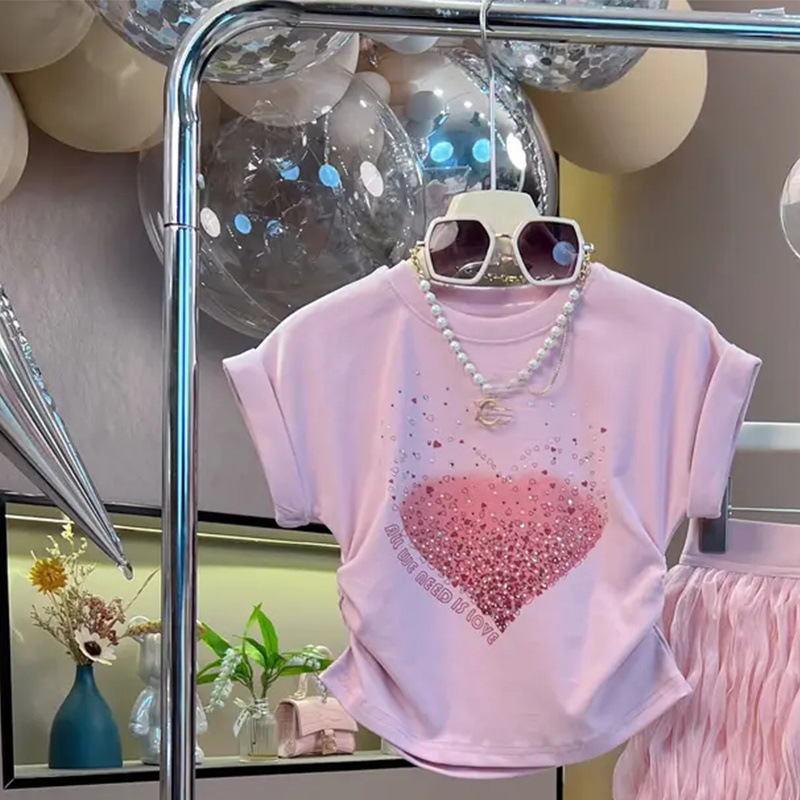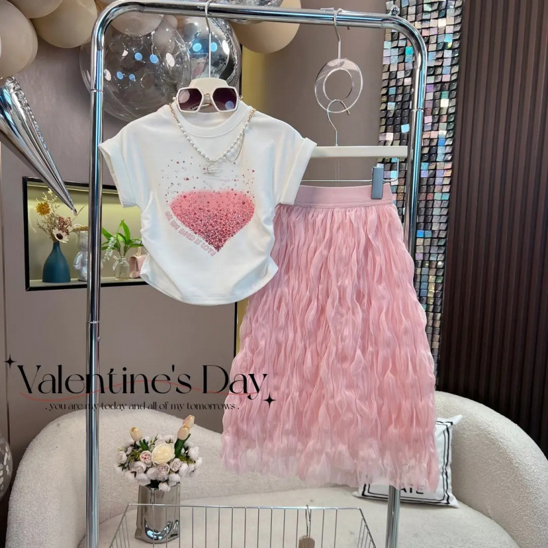 여자 치마 2025 여름 새로운 사랑 뜨거운 시추 짧은 소매 탑 긴 치마 세트 티셔츠 투피스 세트스토어 가기
