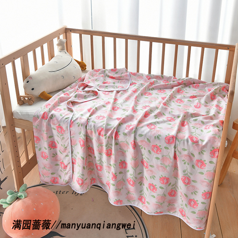 여름 면 실크 더블 레이어 담요 얇은 이불 면 실크 아기 담요 아기 여름 이불 어린이 인공 면 여름 이불