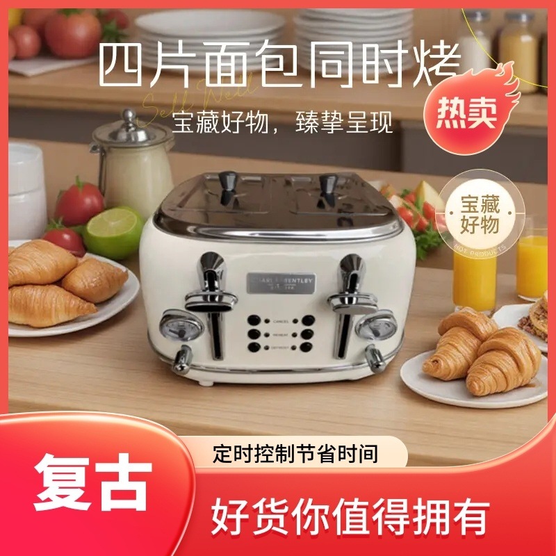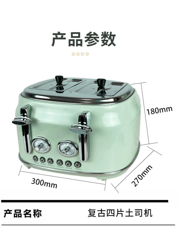 出口四片全自动多功能多士炉吐司机家用烤面包早餐机复古Toaster