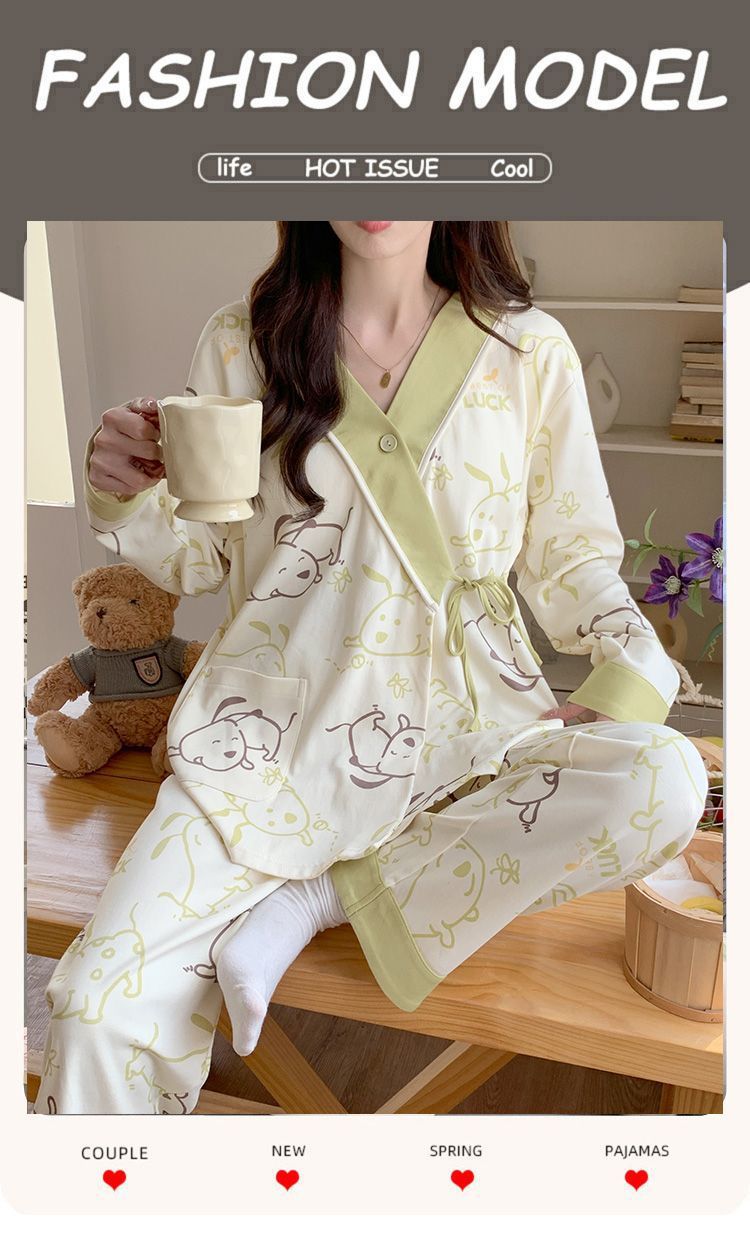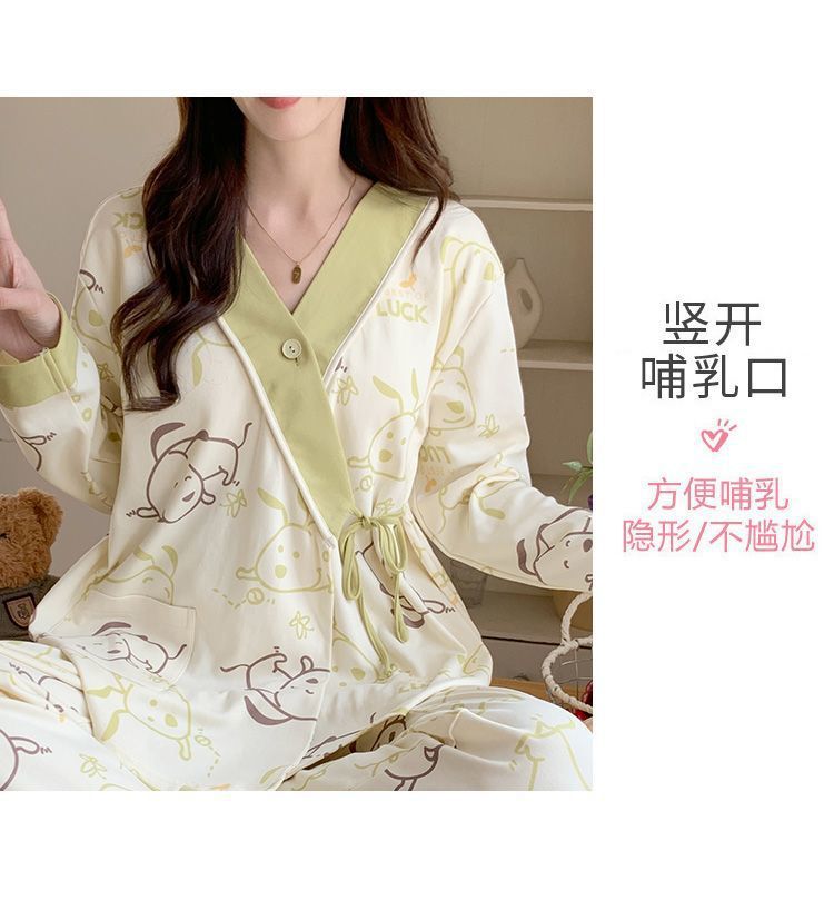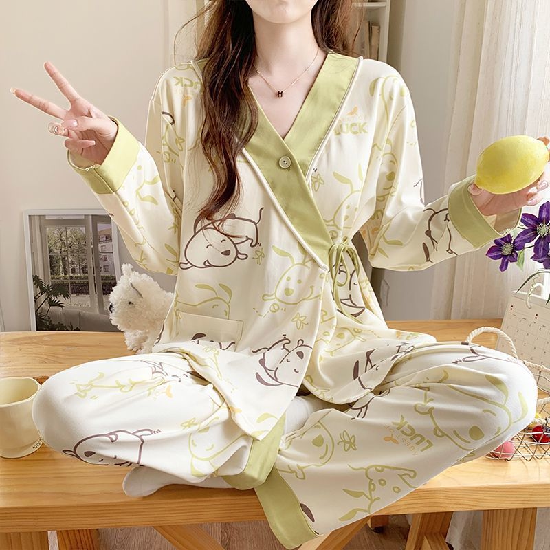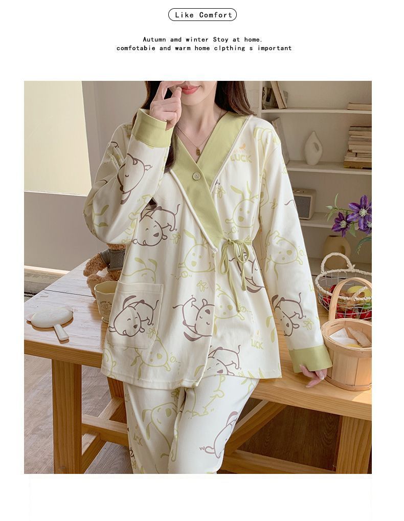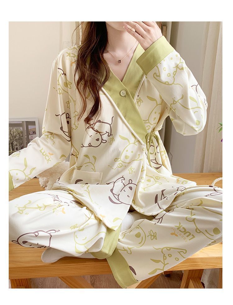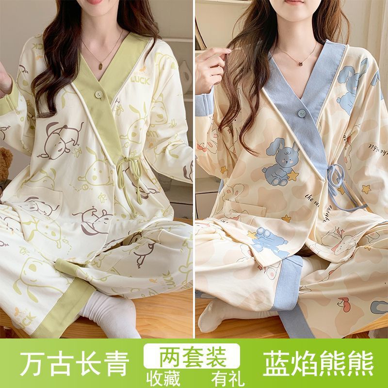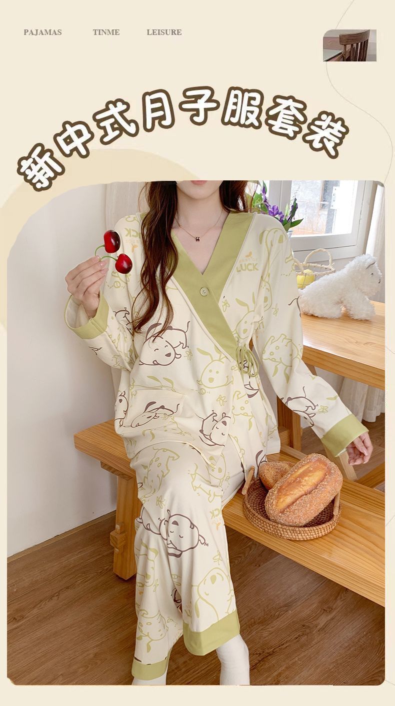 기모노 봄과 여름 얇은 땀 흡수 문 의류 임산부 잠옷 조정 가능한 허리 산후 모유 수유 세트