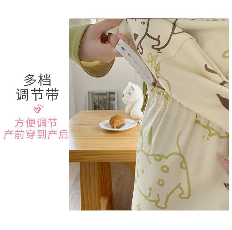 기모노 봄과 여름 얇은 땀 흡수 문 의류 임산부 잠옷 조정 가능한 허리 산후 모유 수유 세트스토어 가기