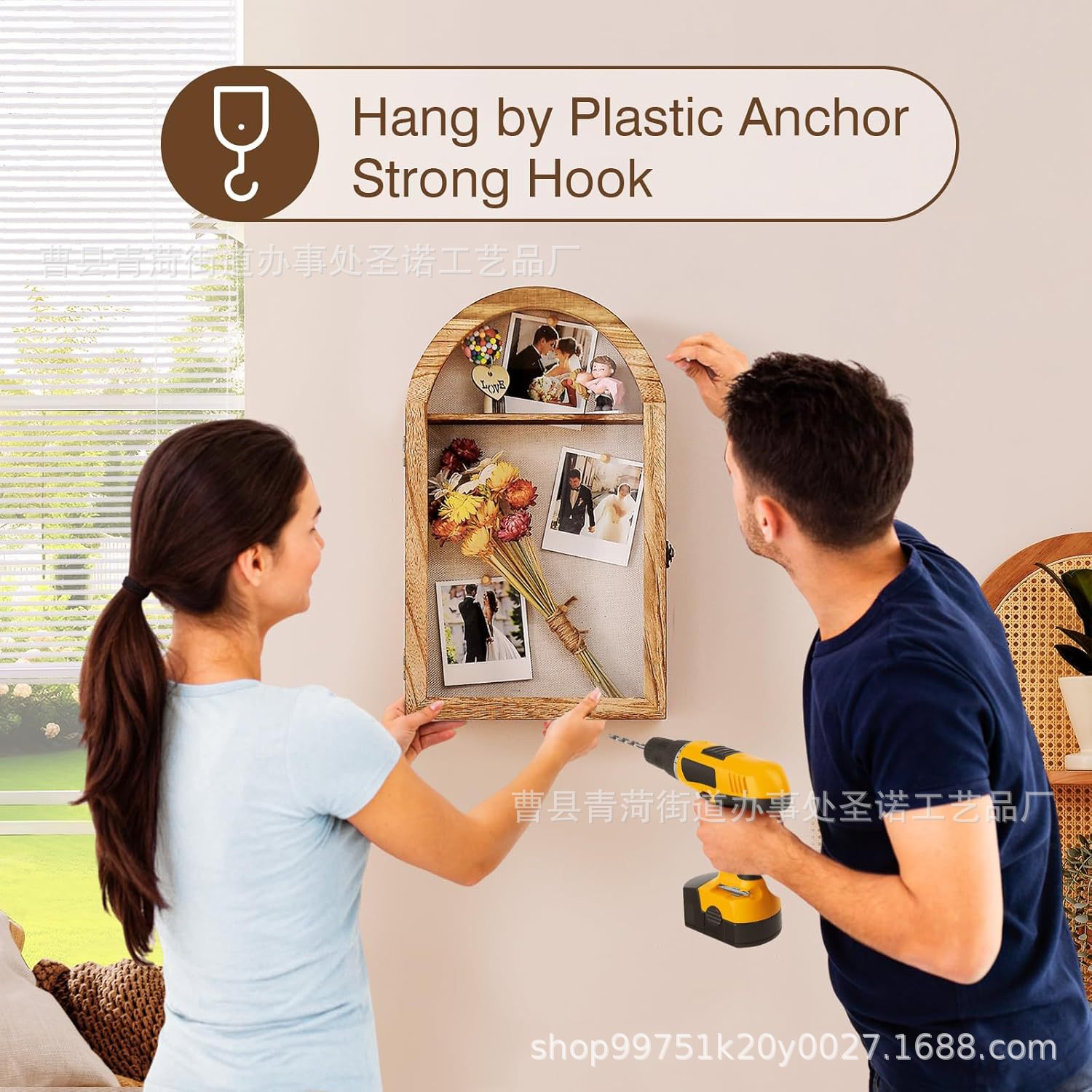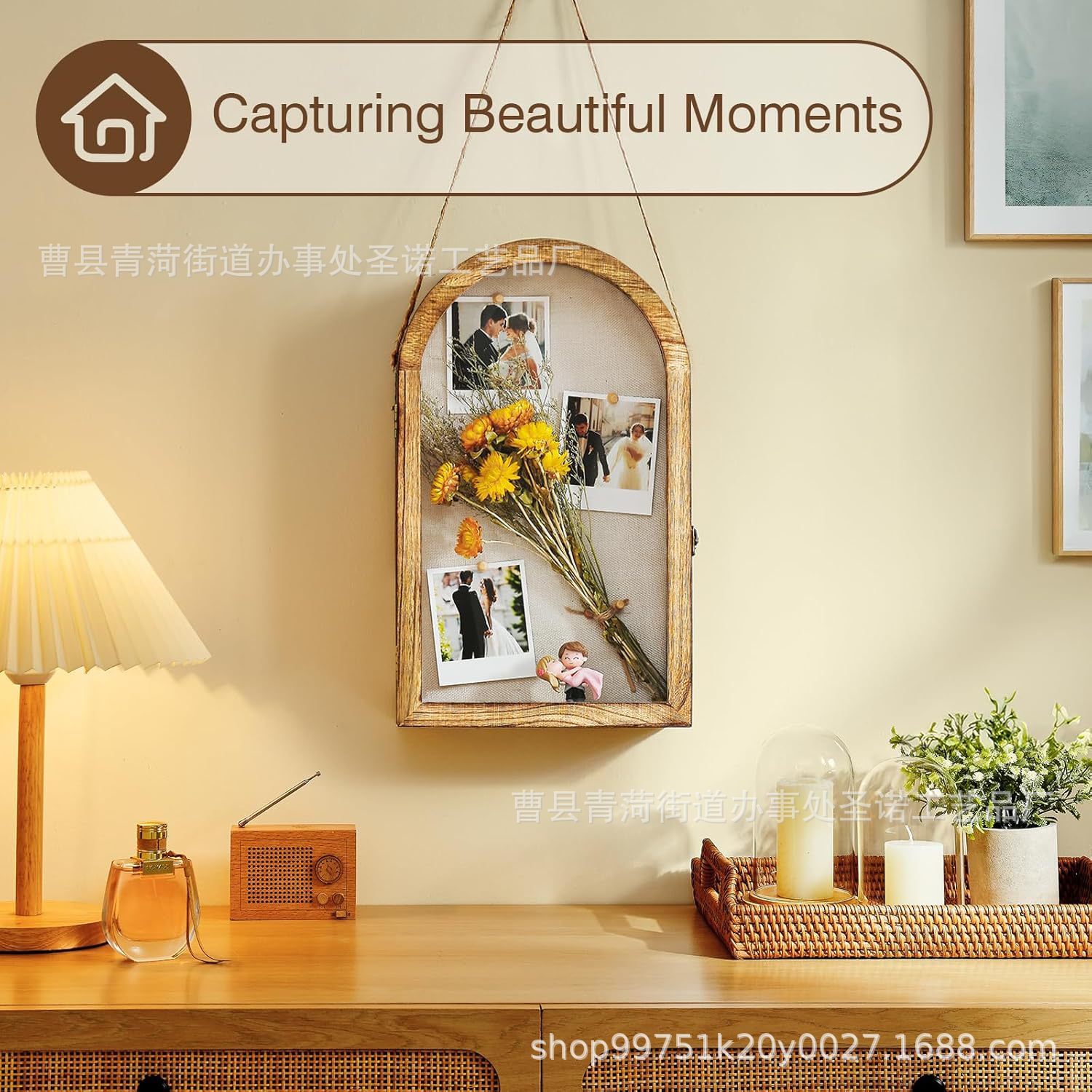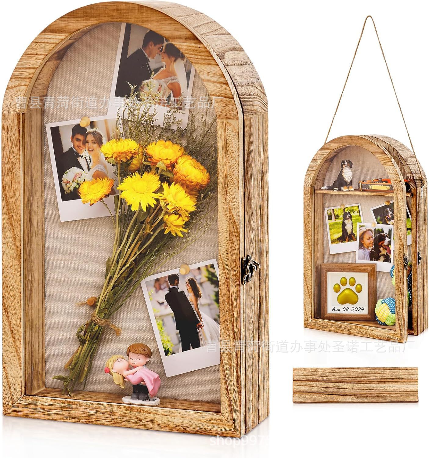 나무 사진 프레임 그림자 상자 나무 웨딩 부케 기념품 메달 디스플레이 상자 DIY 말린 꽃 기념품 나무 상자