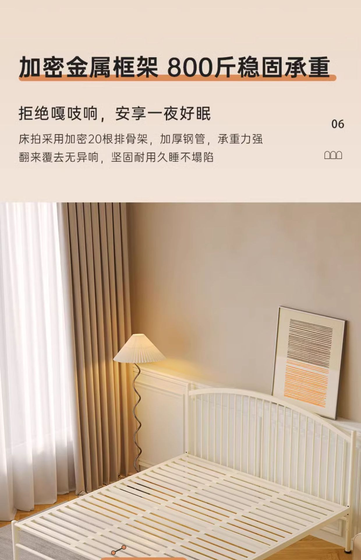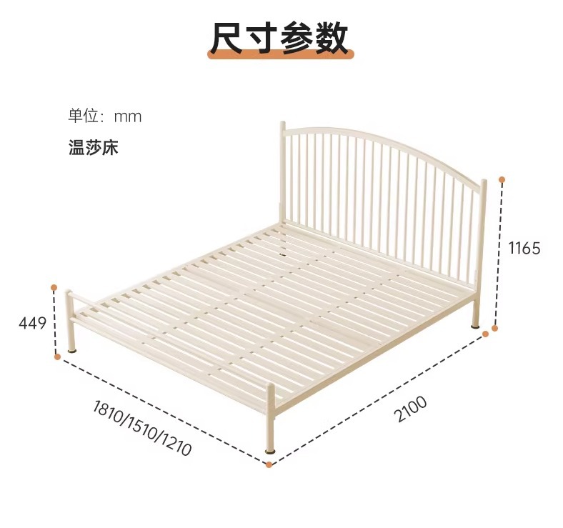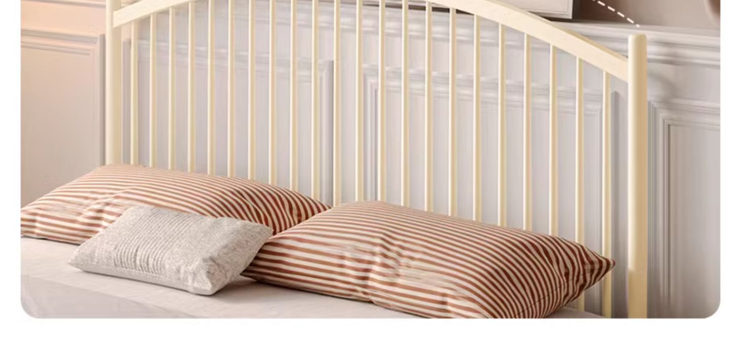 • 매트리스가 없는 치즈 화이트 철제 침대