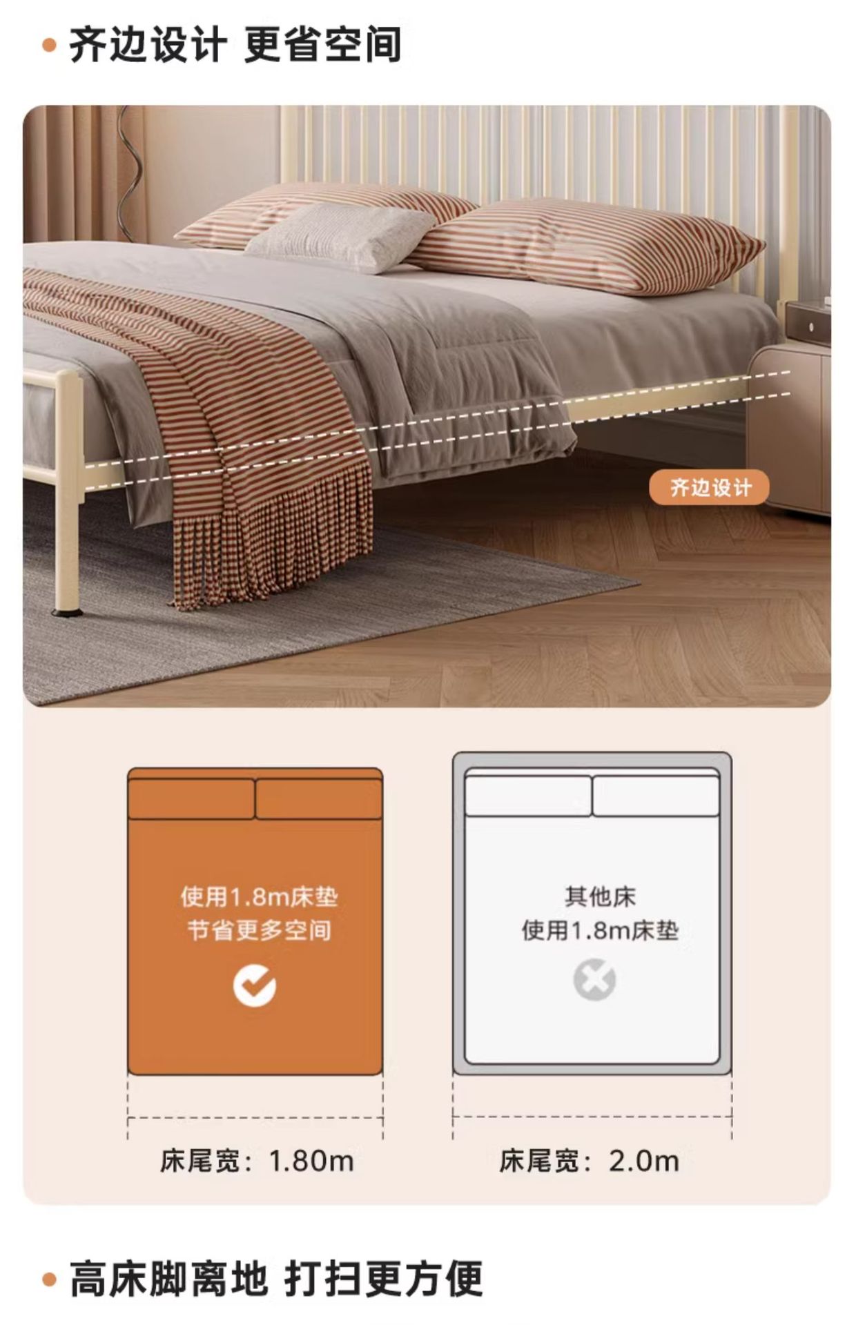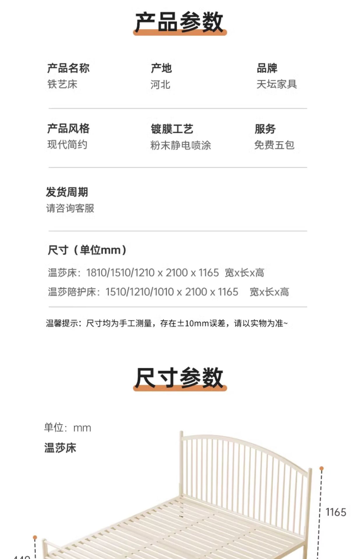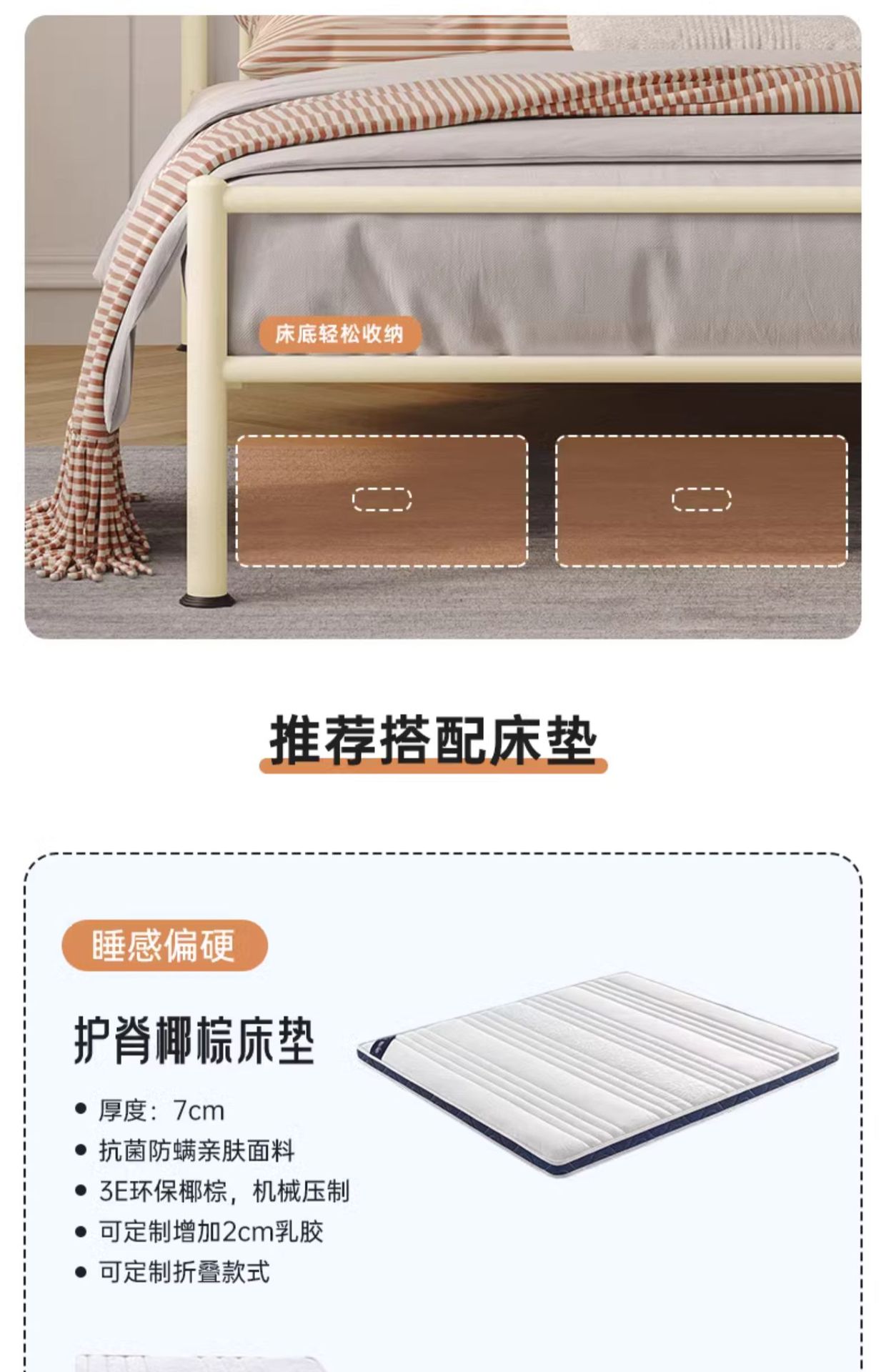 • 매트리스가 없는 치즈 화이트 철제 침대