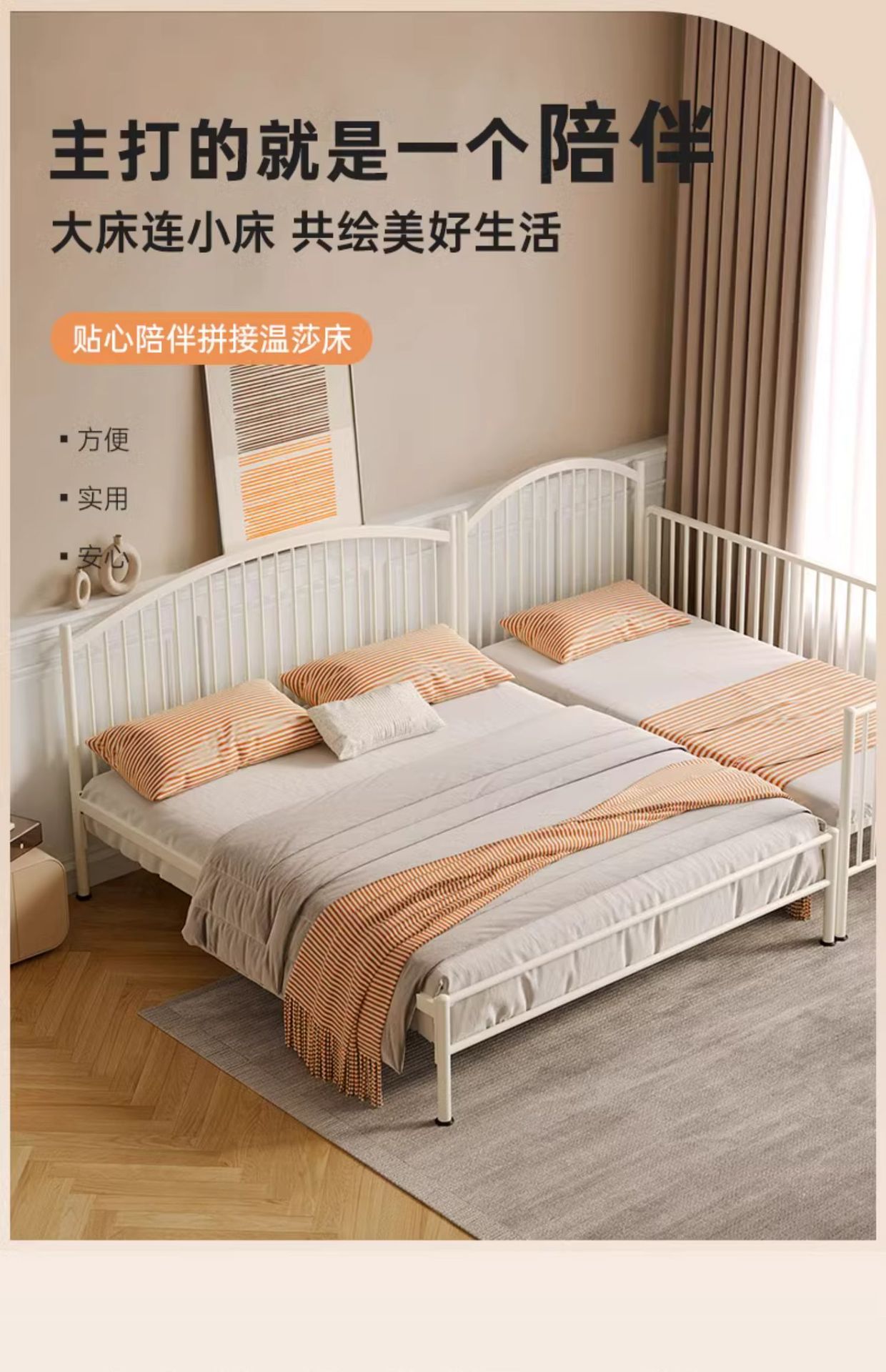 J^ 가구 단철 접합 단철 침대(가드레일 포함) 어린이용 확장 접합 동반자 높은 침대 프레임