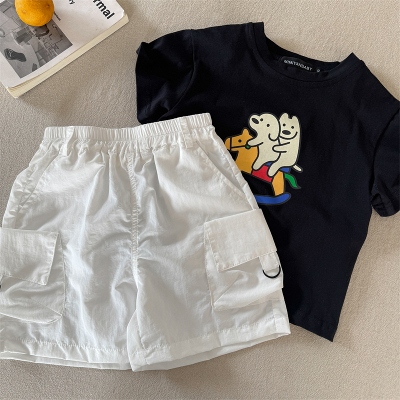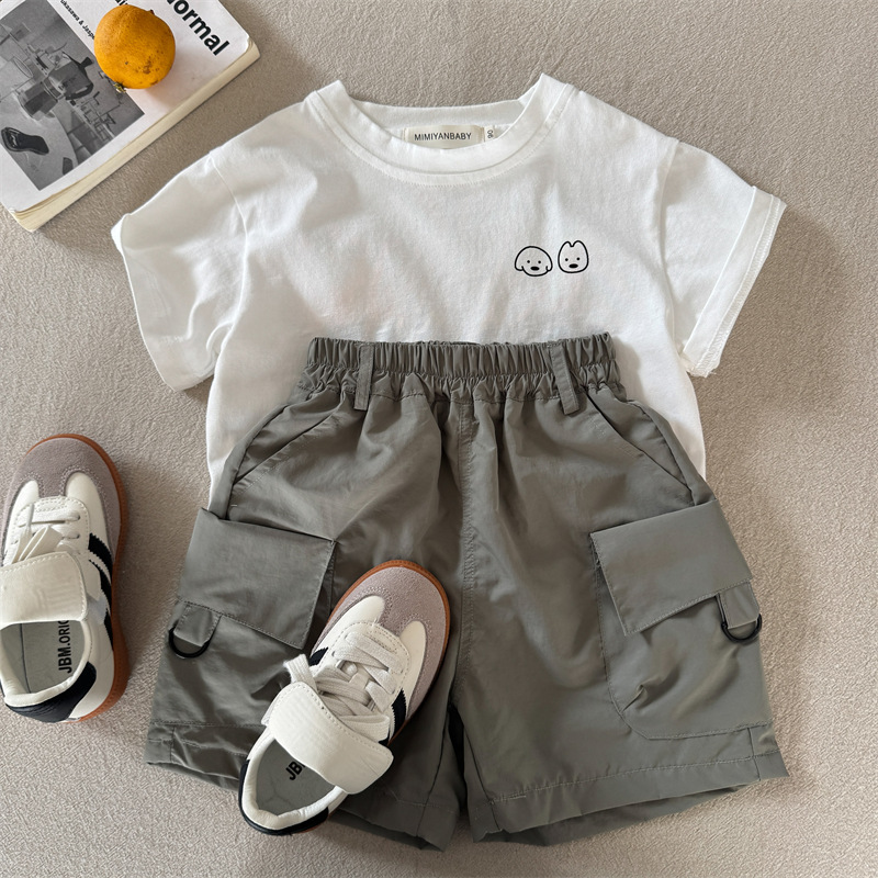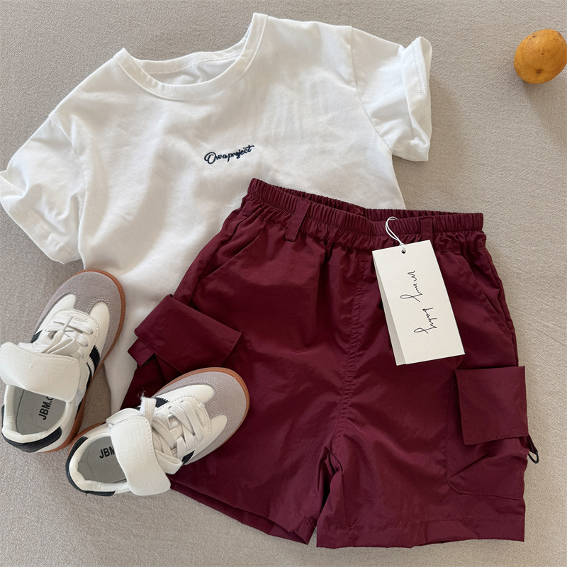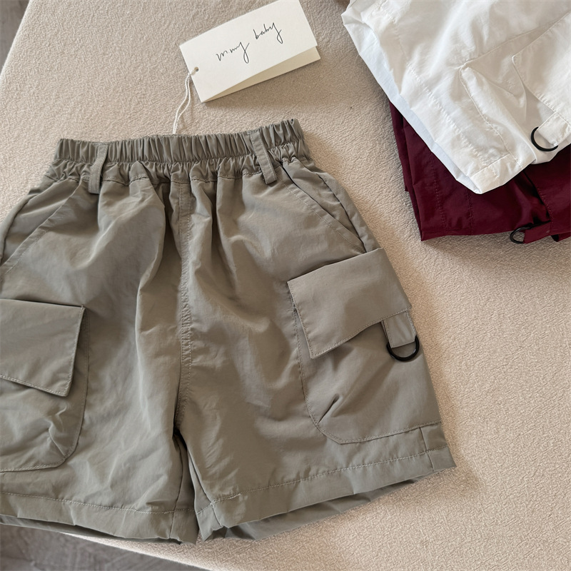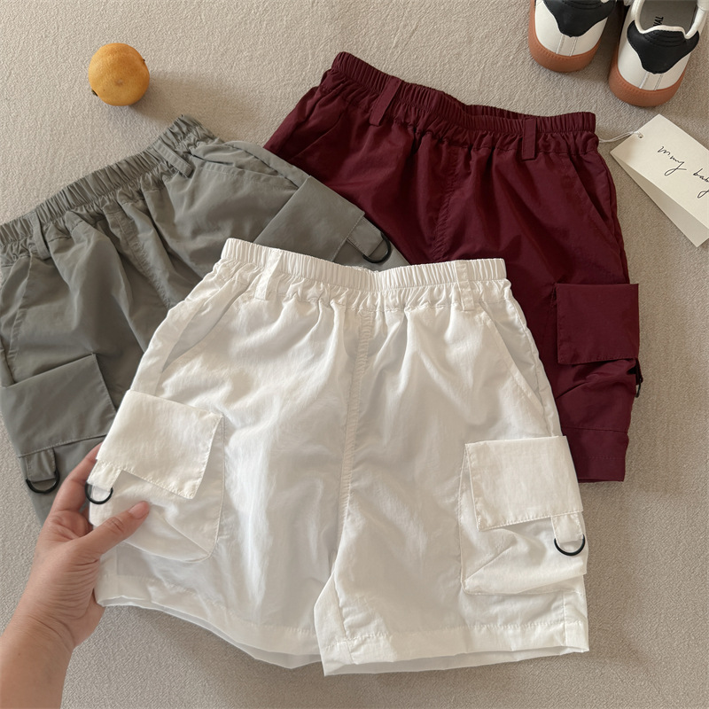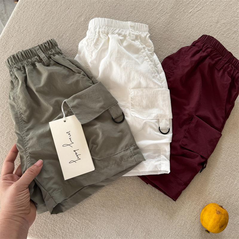 어린이 반바지 2025 스팽글 여름 새 소년과 소녀 솔리드 컬러 포켓 반바지 아기의 올 매치 바지 트렌디스토어 가기