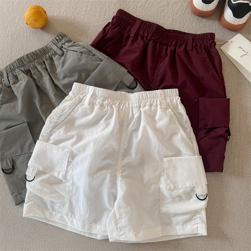 어린이 반바지 2025 스팽글 여름 새 소년과 소녀 솔리드 컬러 포켓 반바지 아기의 올 매치 바지 트렌디