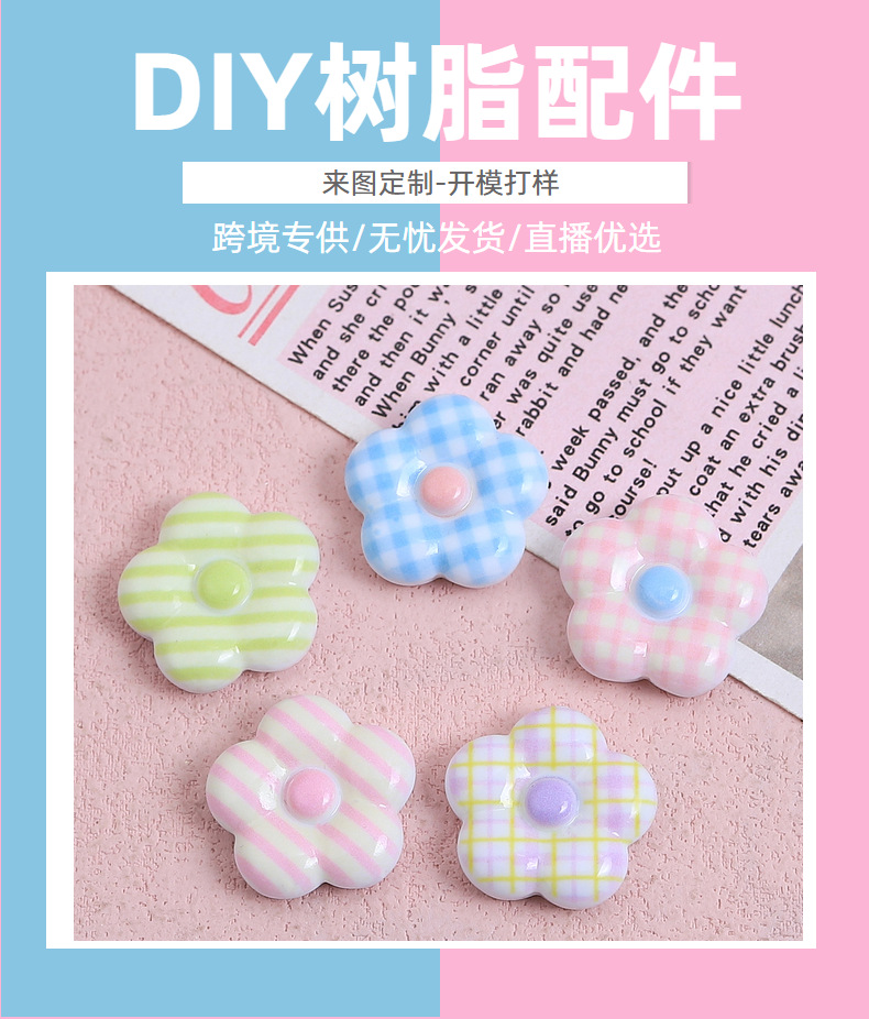 다채로운 격자 무늬 꽃 만화 diy 쥬얼리 액세서리 크림 접착제 수지 작은 액세서리 머리핀 수제 재료 패키지스토어 가기