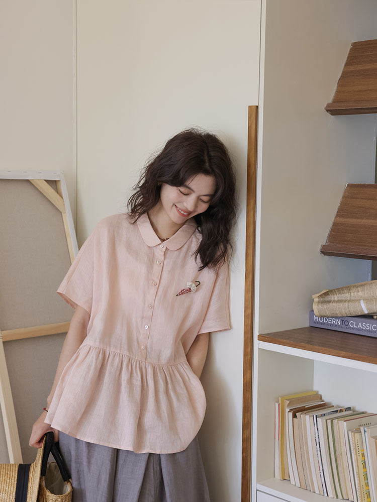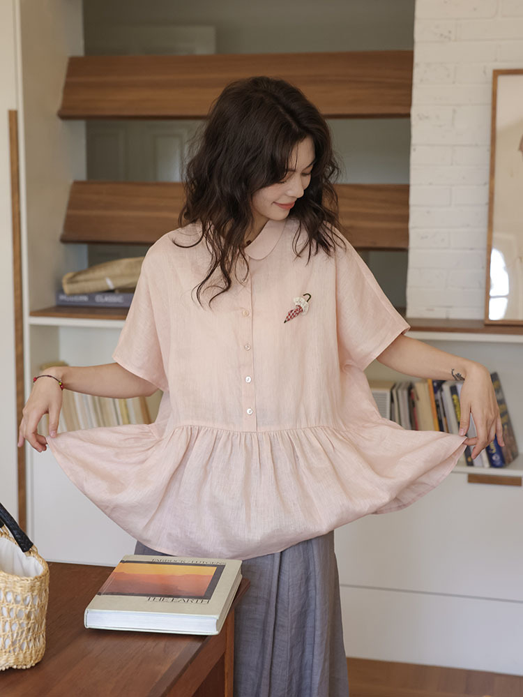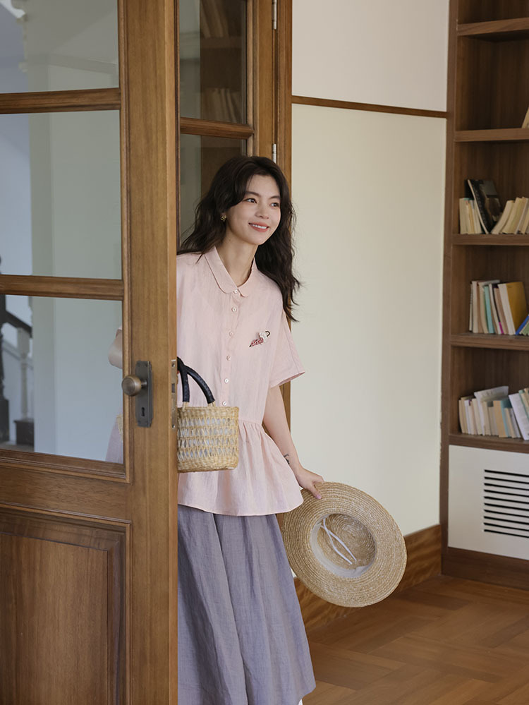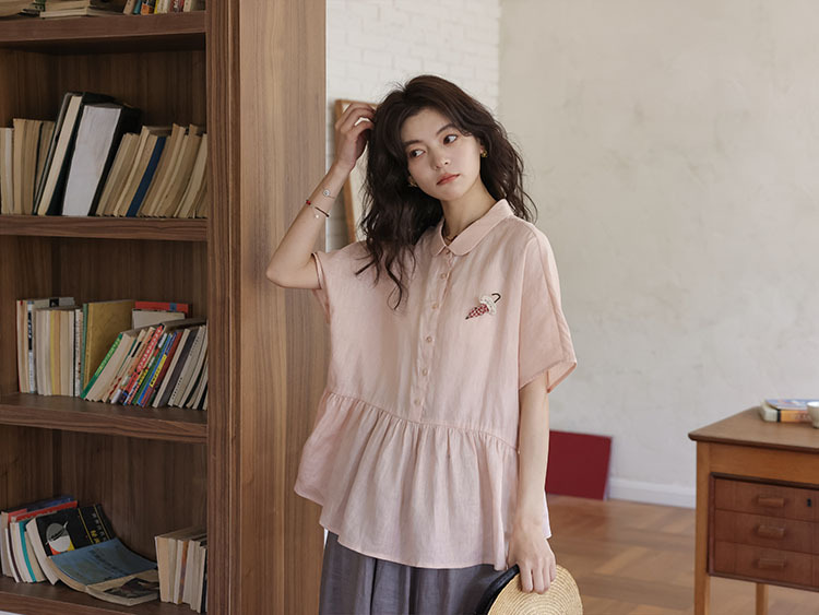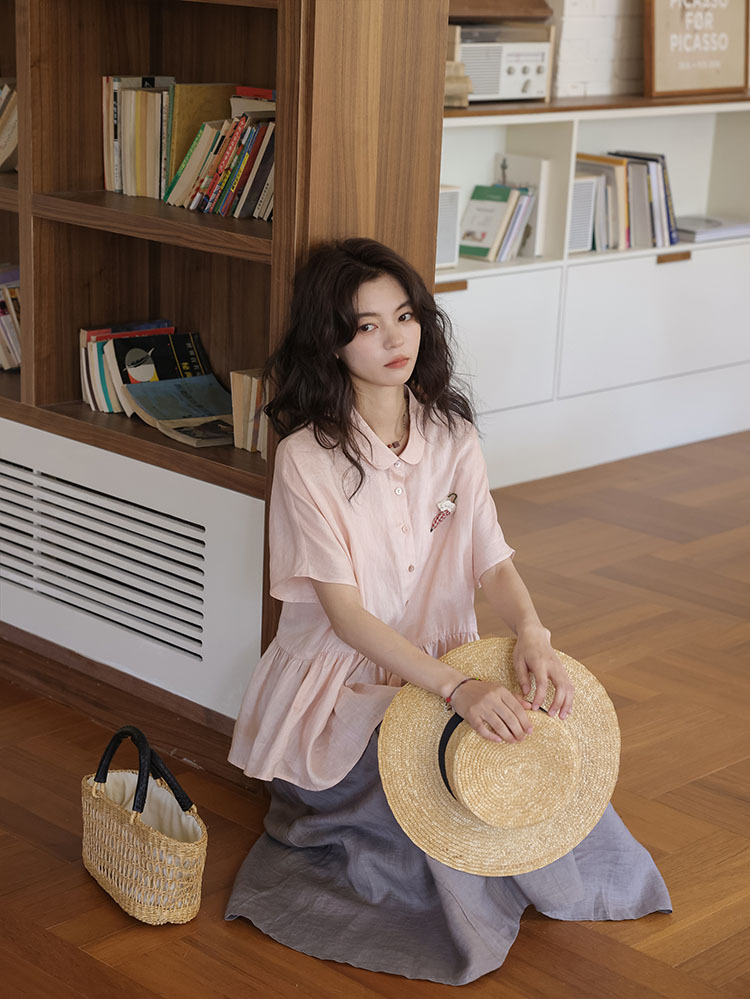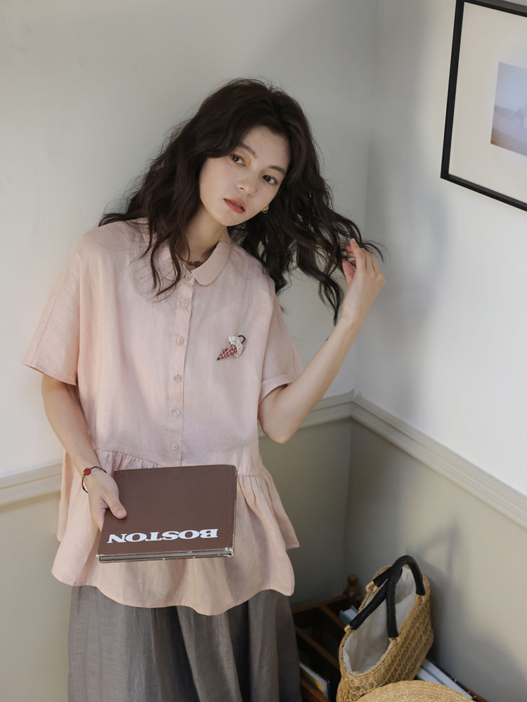 2025 년 여름 새로운 예술적 일본 달콤한 작은 Lar 느슨한 슬리밍 풀오버 인형 반팔 셔츠 탑스토어 가기