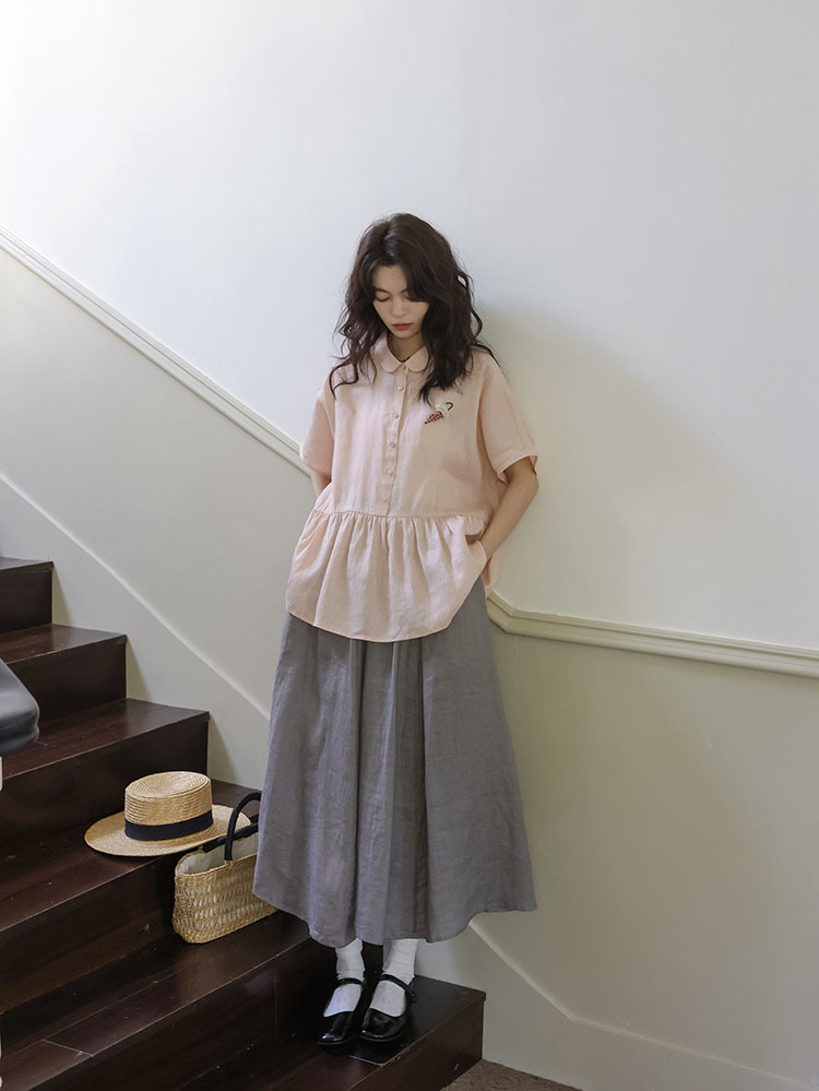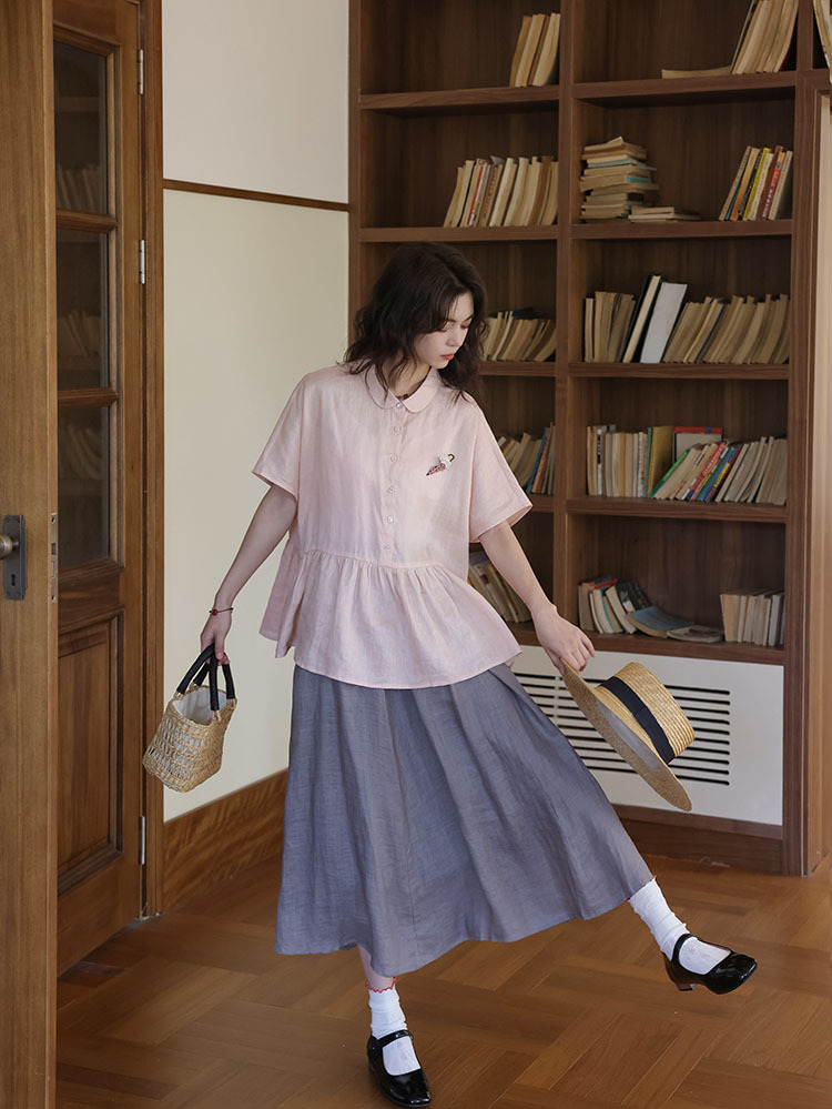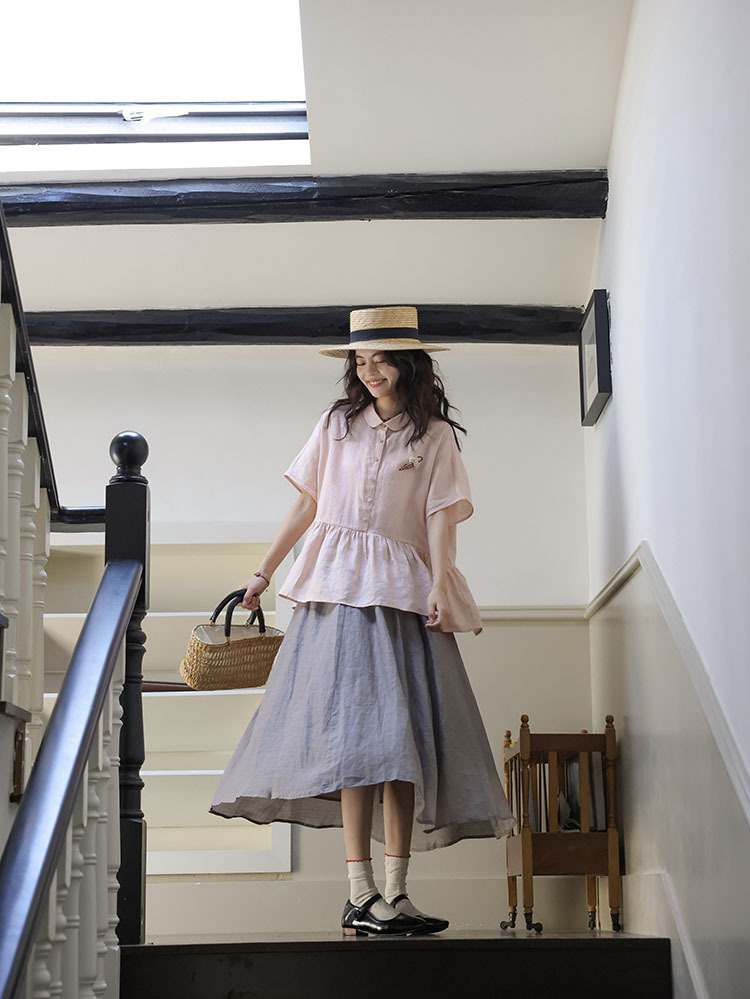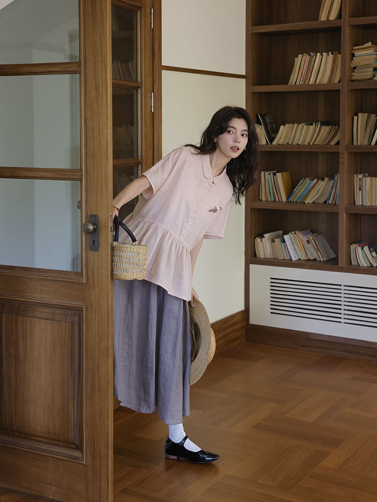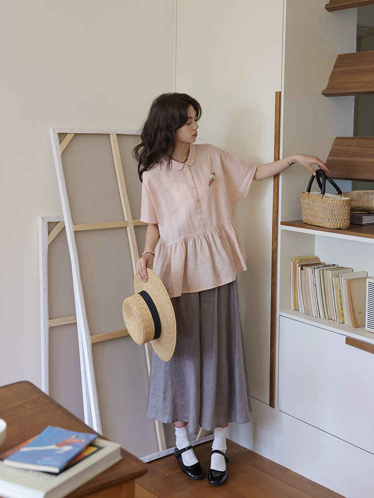 2025 년 여름 새로운 예술적 일본 달콤한 작은 Lar 느슨한 슬리밍 풀오버 인형 반팔 셔츠 탑스토어 가기