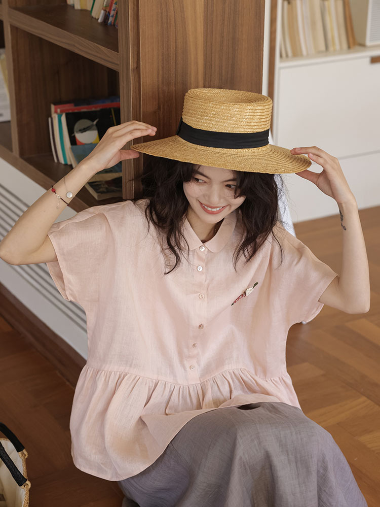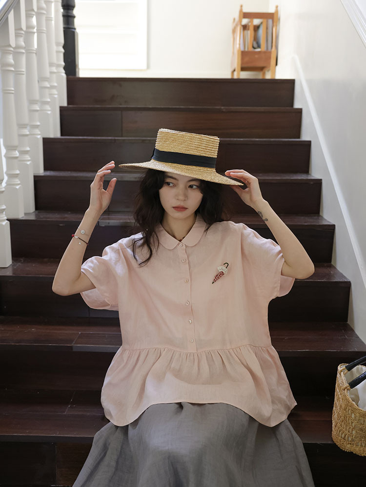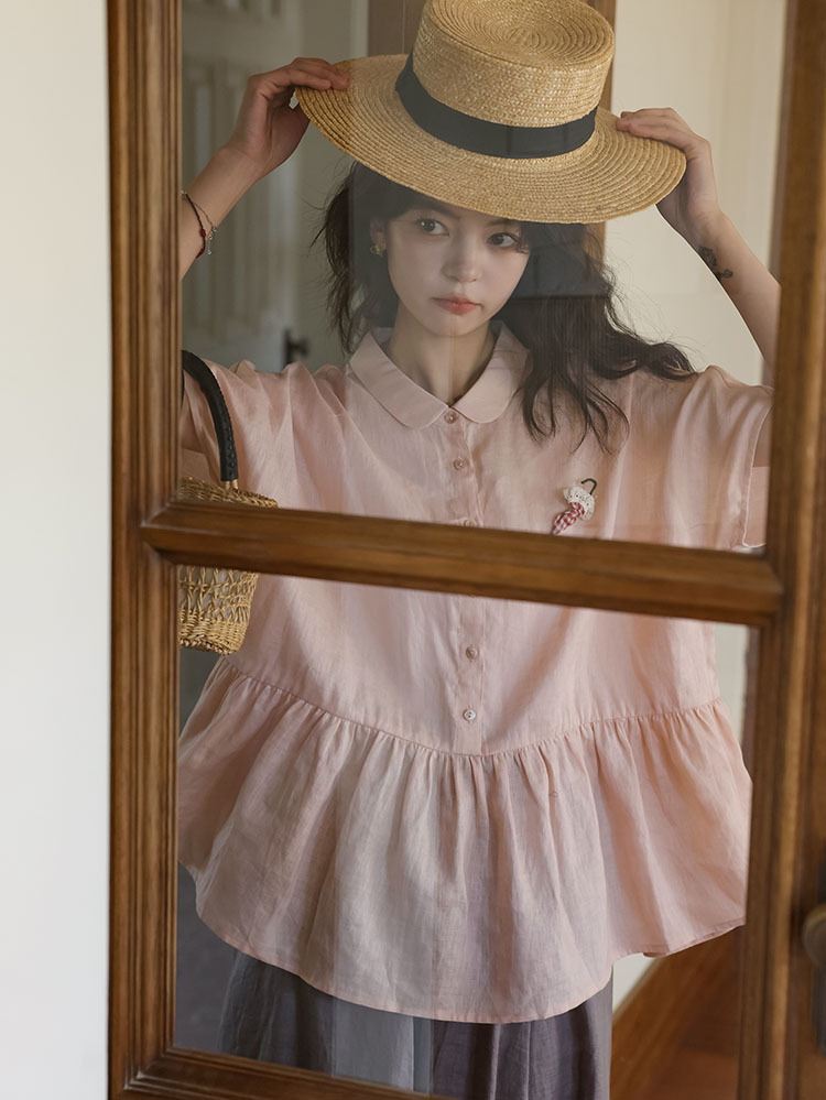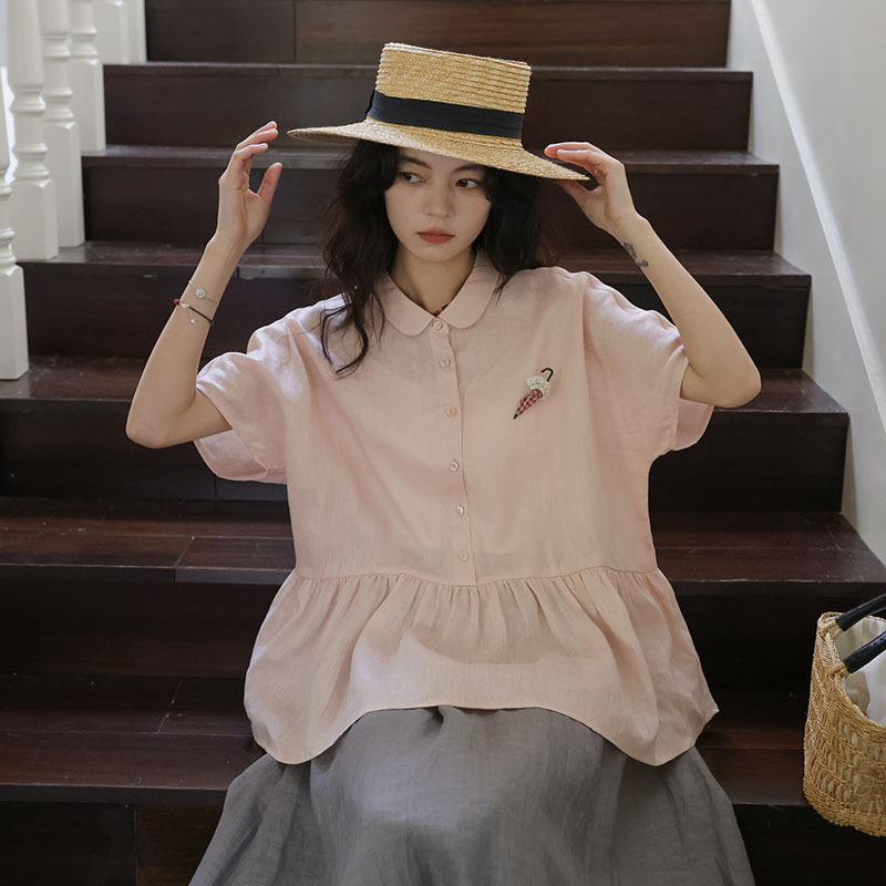 2025 년 여름 새로운 예술적 일본 달콤한 작은 Lar 느슨한 슬리밍 풀오버 인형 반팔 셔츠 탑