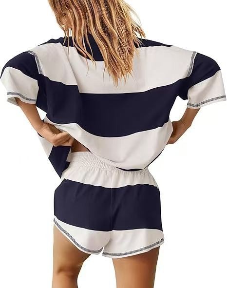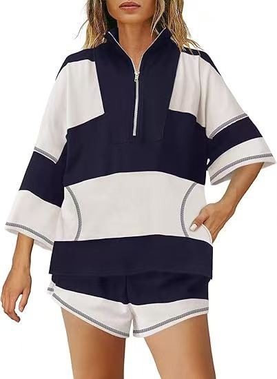 2025 봄과 여름 국경 유럽 및 미국 아마존 독립 역 패션 캐주얼 지퍼 7 점 소매 느슨한 반바지 세트