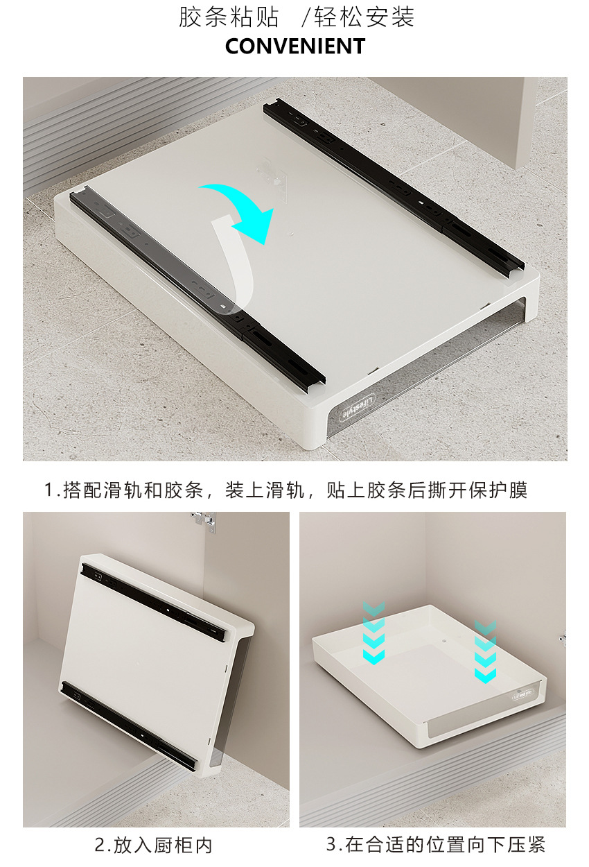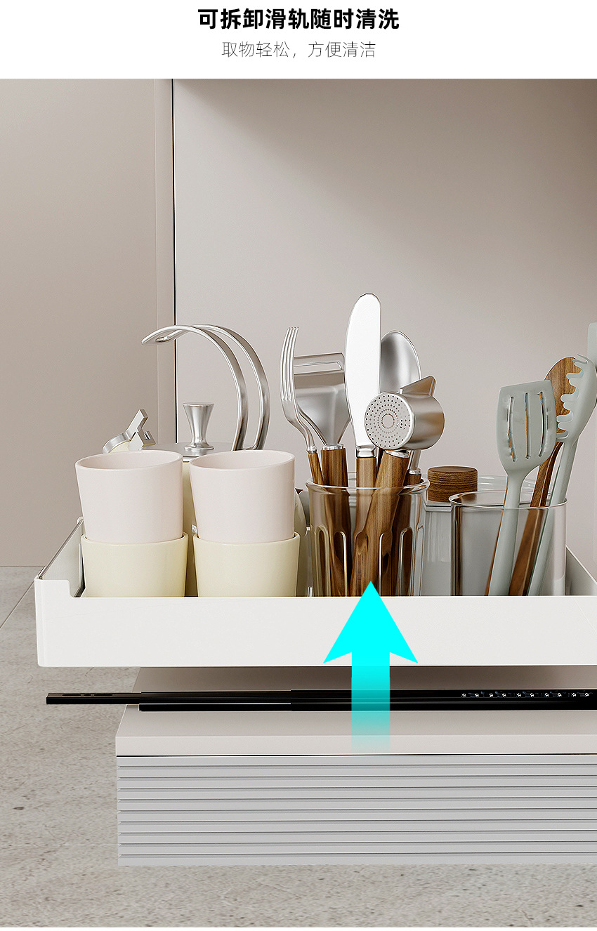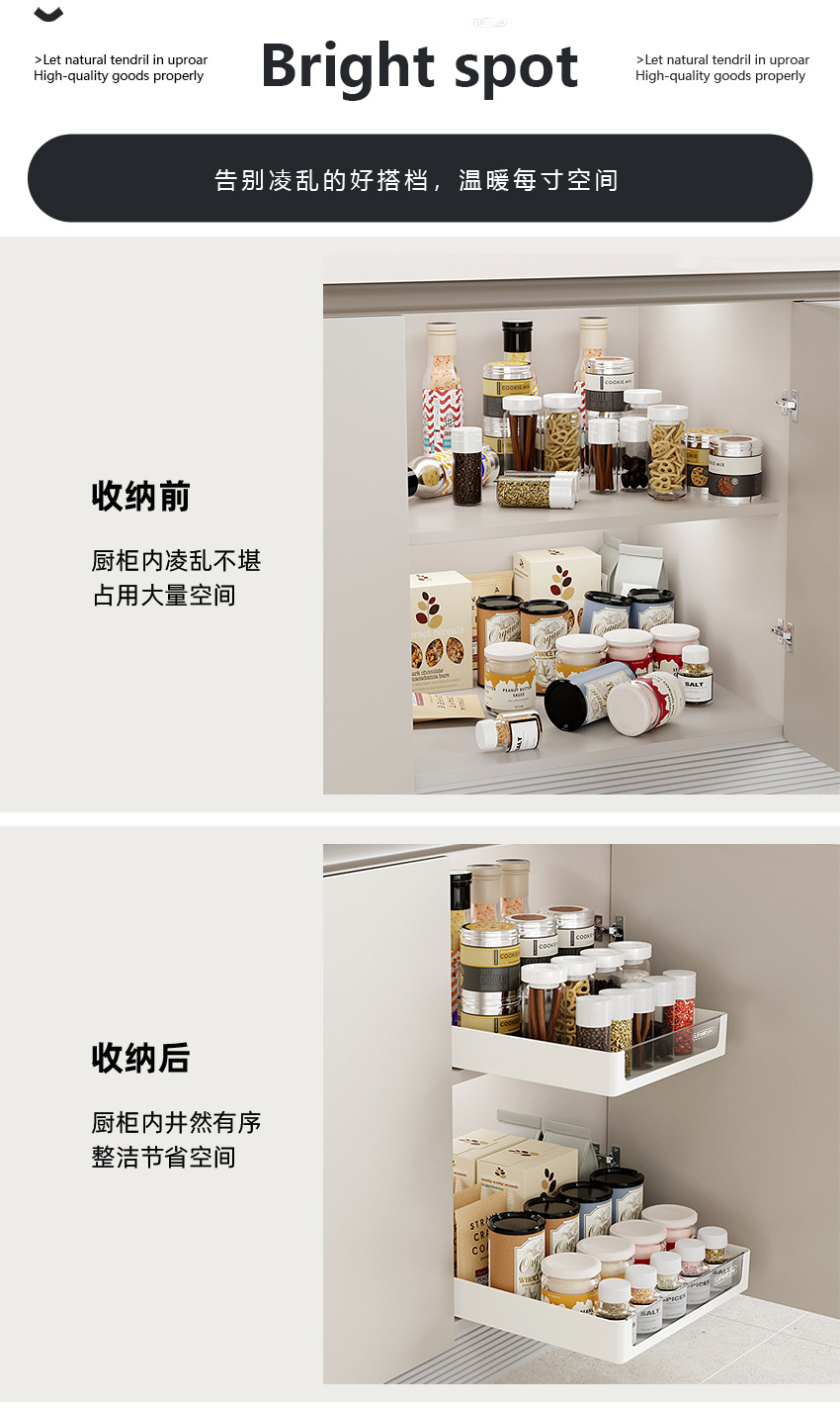 免打孔厨房抽拉式置物架下水槽拉篮橱柜子滑轨抽屉收纳盒调味料架