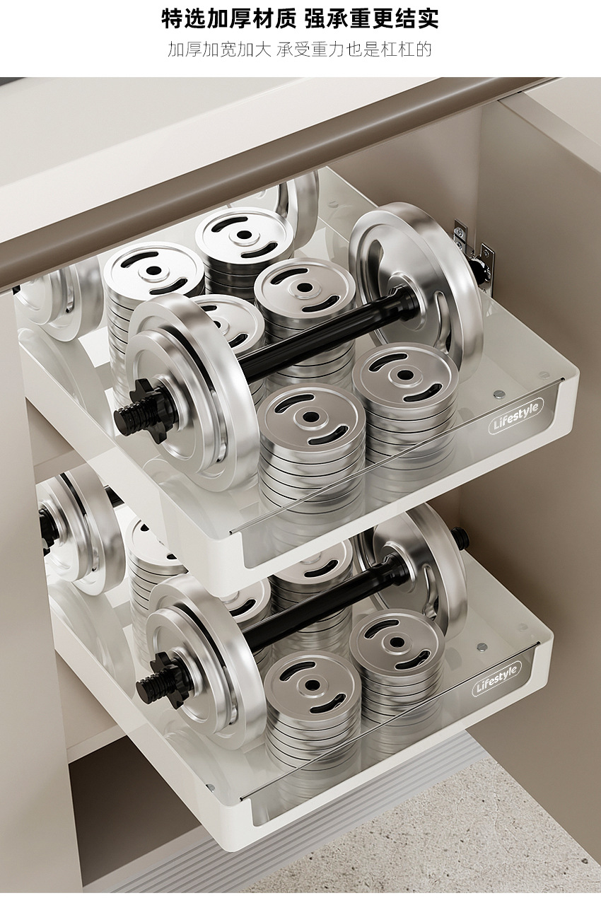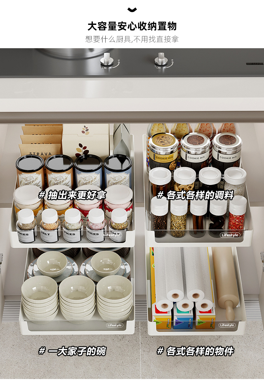 跨境厨房置物架放锅收纳盒调料架子下水槽抽拉式深柜用滑轨拉篮
