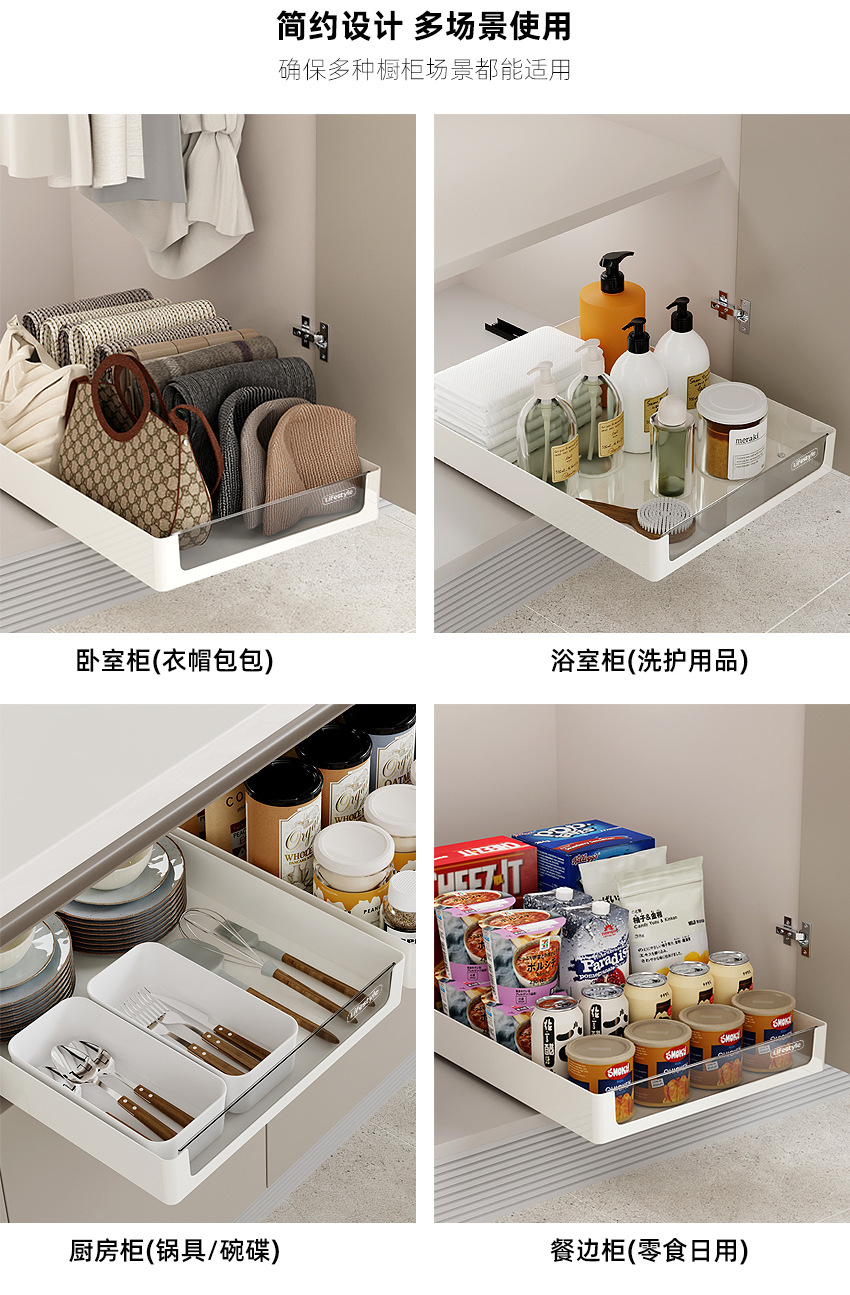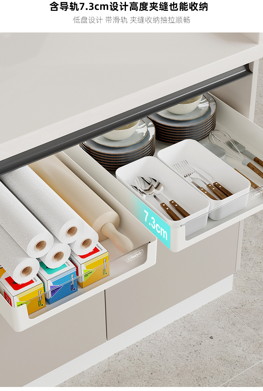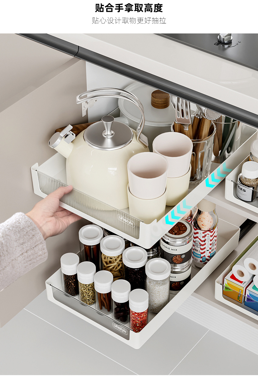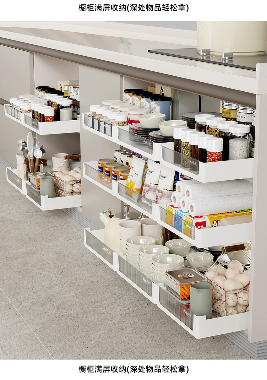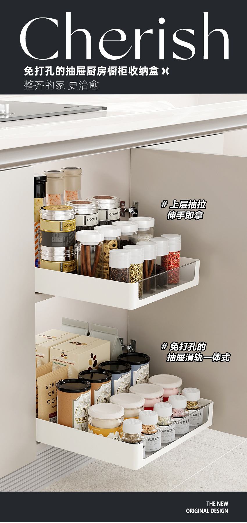 厨房抽拉式置物架下水槽调料收纳盒免打孔拉篮橱柜滑轨抽屉收纳盒