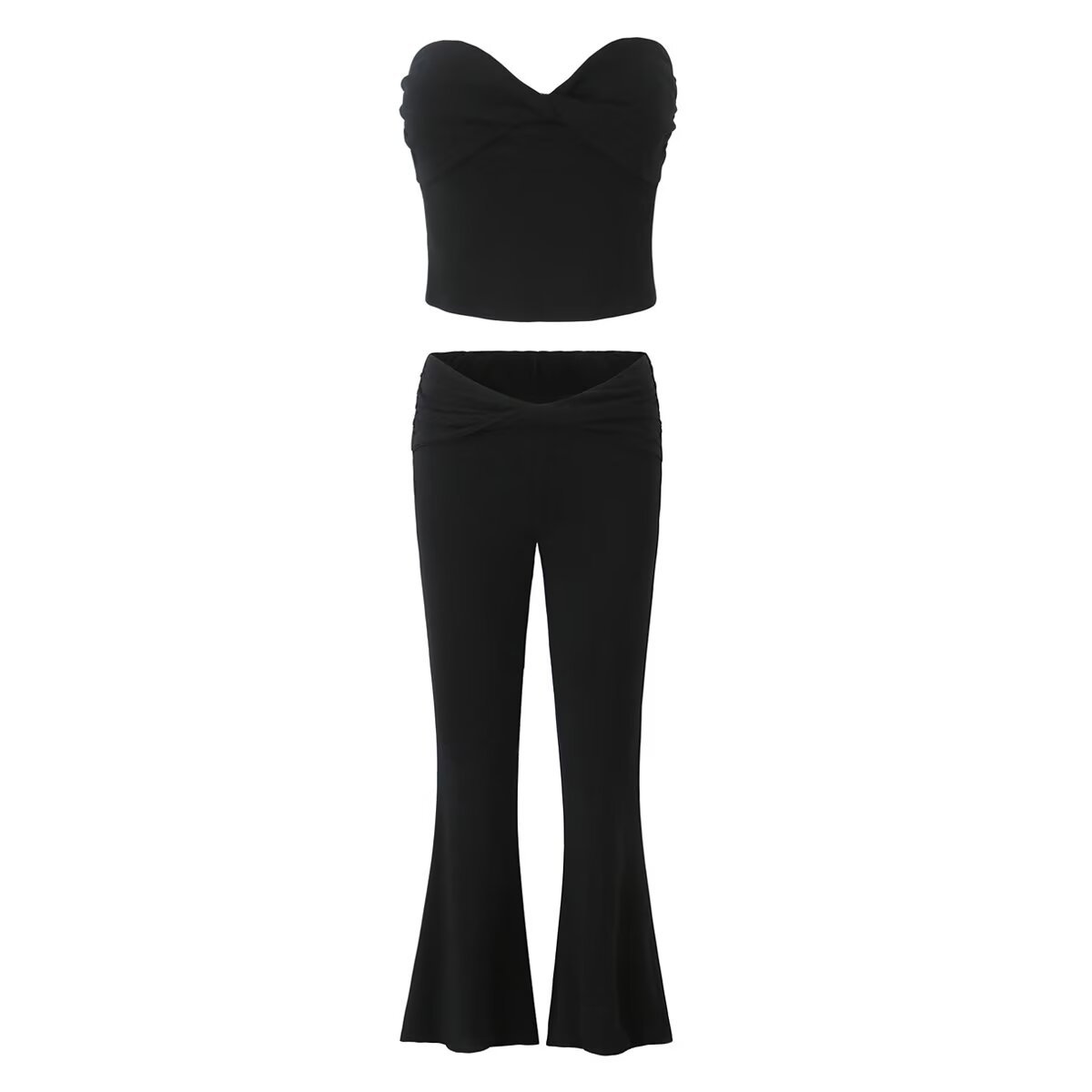 국경을 넘는 유럽과 미국 의류 2025 봄 새로운 패션 섹시한 매력 튜브 탑 + 하이 웨이스트 기질 마이크로 플레어 바지스토어 가기