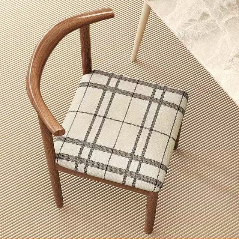 • 2025년 인기 혼체어(흑백 체크무늬 원단) 월넛 컬러 체어 프레임