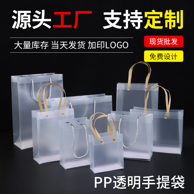 PP 젖빛 플라스틱 핸드백 재고 있음 PVC 투명 기념품 포장 가방 맞춤 로고 웨딩 사탕 선물 가방