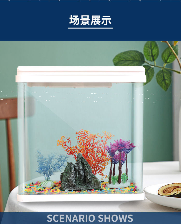산소가 있는 유리 수조, 거실, 가정용, 작은 게으른 사람, 물 교체 없음, 데스크탑 조경 수족관, 드롭 배송