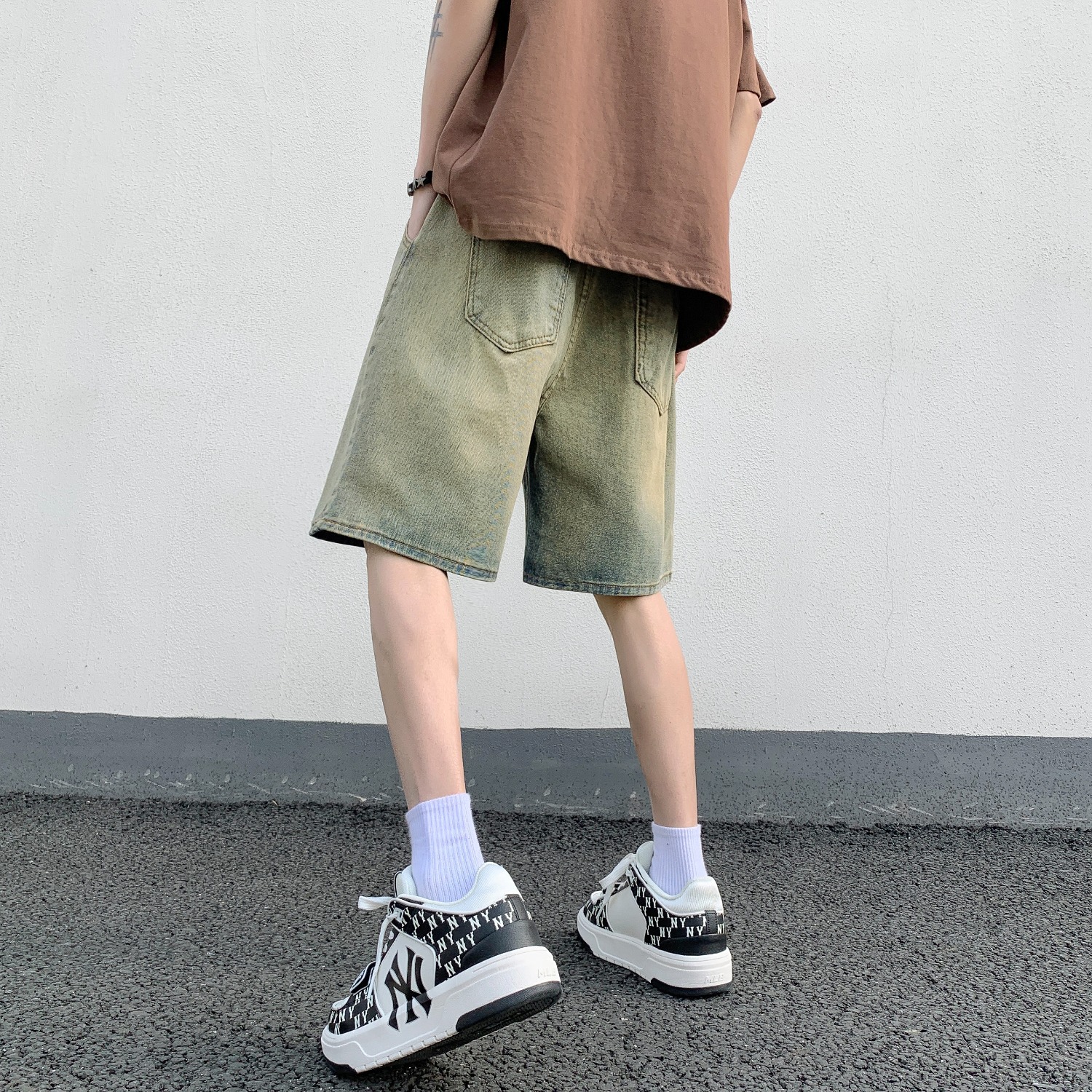 여름 루즈 워싱 디스트레스드 데님 반바지 남성용 와이드 레그 스트레이트 5부 팬츠 아메리칸 하이 스트리트 트렌디 브랜드 핸섬 팬츠스토어 가기