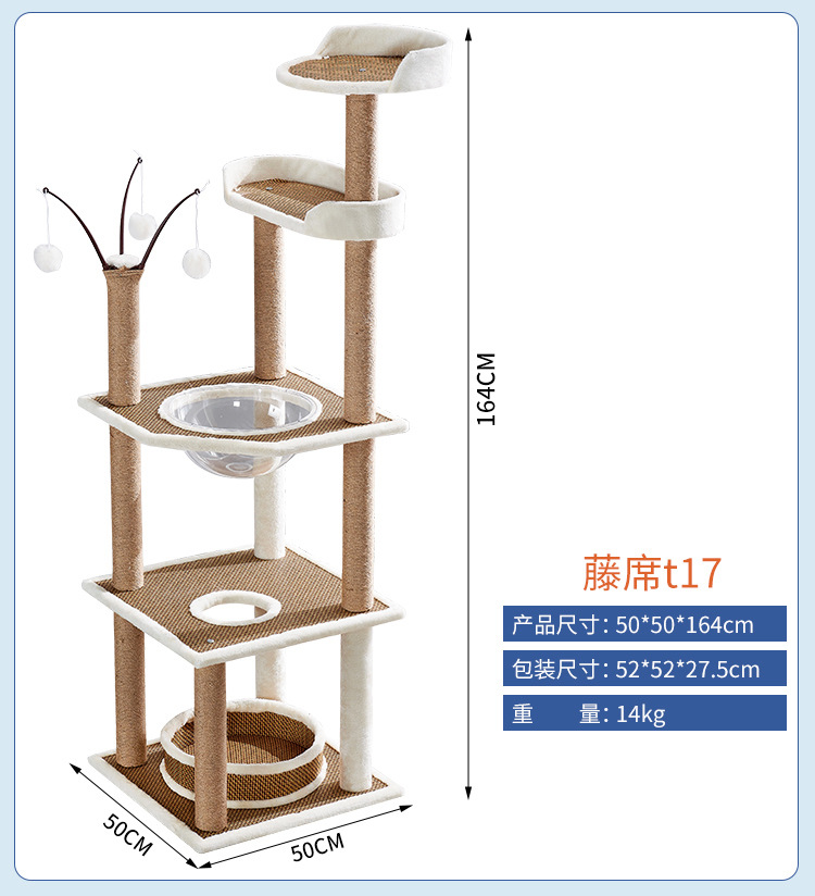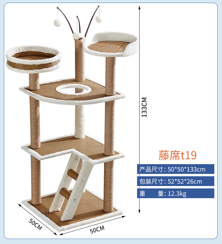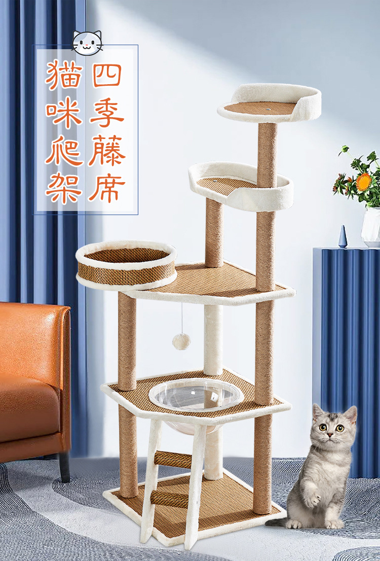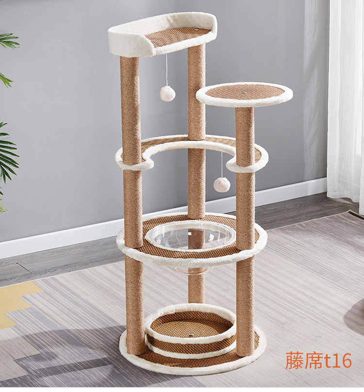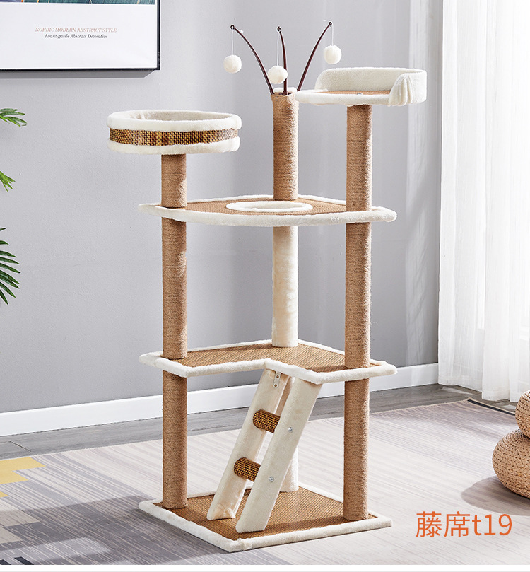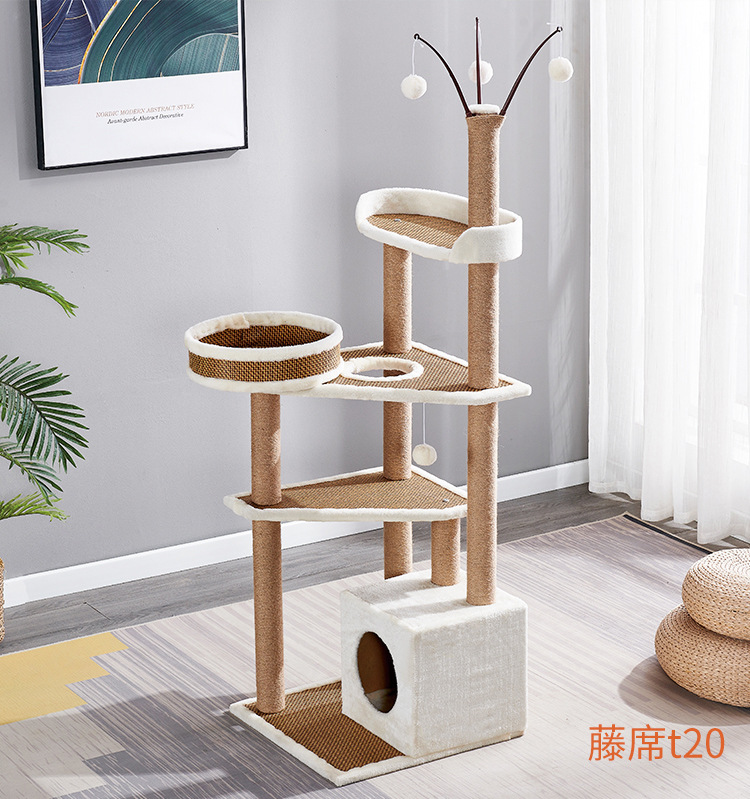 고양이 둥지와 고양이 장난감이 있는 도매 맞춤형 녹색 대나무 매트 고양이 아파트, 산호초 스크래치 포스트, 다층 고양이 클라이밍 프레임