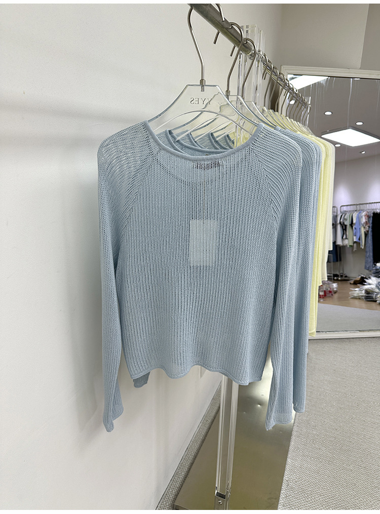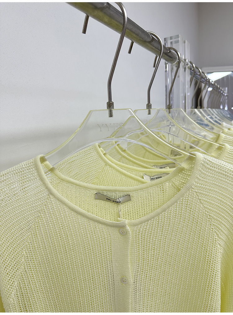 纯色单排扣简约百搭天丝亚麻防晒针织衫短开衫罩衫女